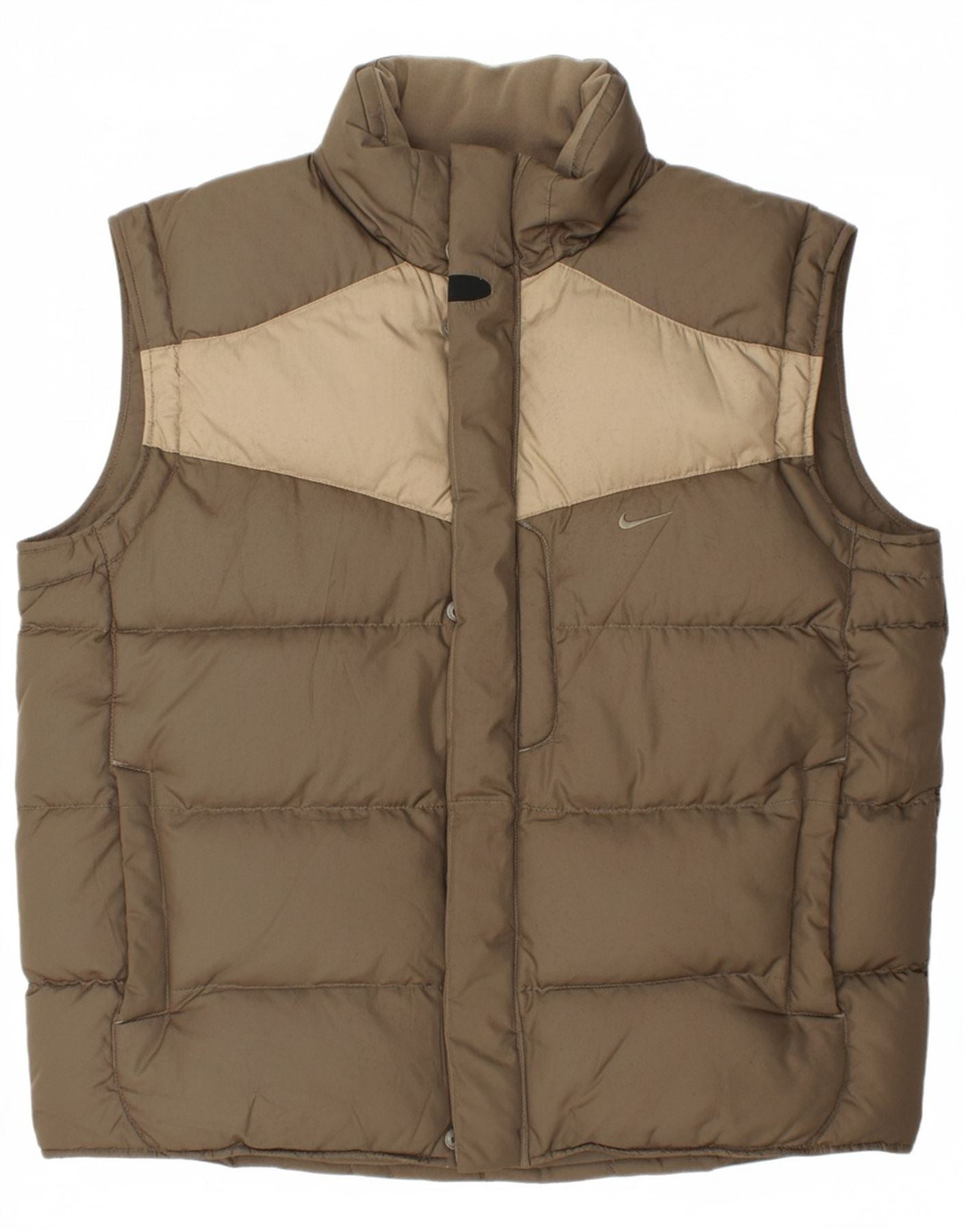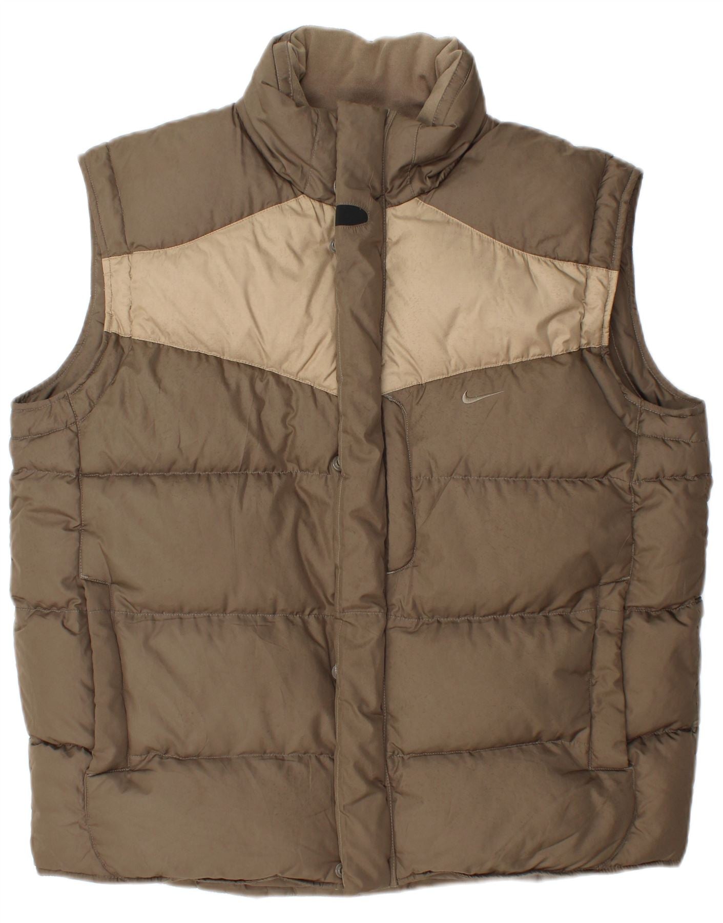 NIKE Mens Padded Gilet UK 42/44 Large Khaki Colourblock Polyester