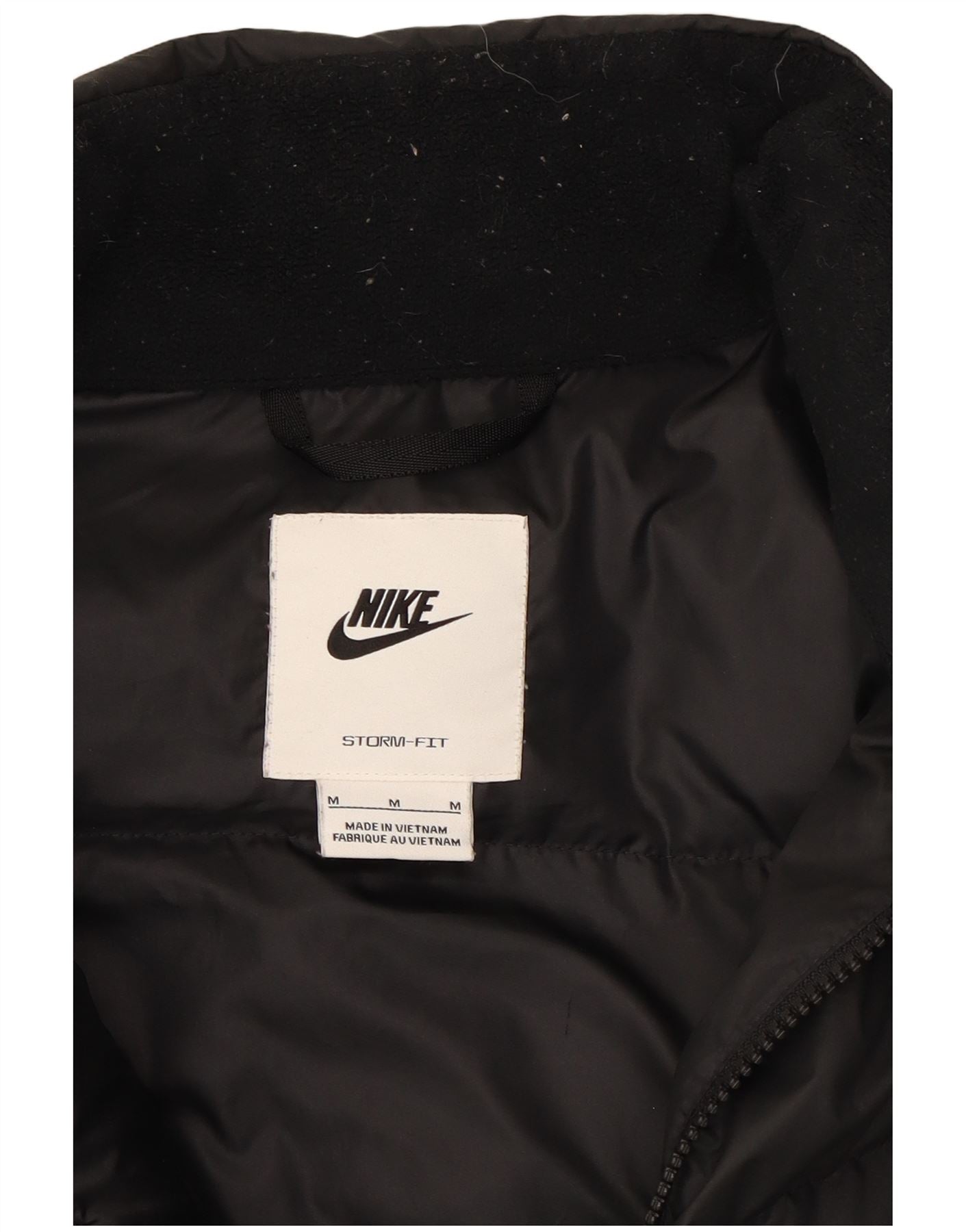 - AI Description: This Nike mens waistcoat is crafted from black down fabric, featuring a quilted design for warmth. It offers a regular fit with a collared neckline and a full zip closure. Sleeveless for ease of movement, it includes practical pockets and a windproof finish. A subtle logo accent completes the sports style.