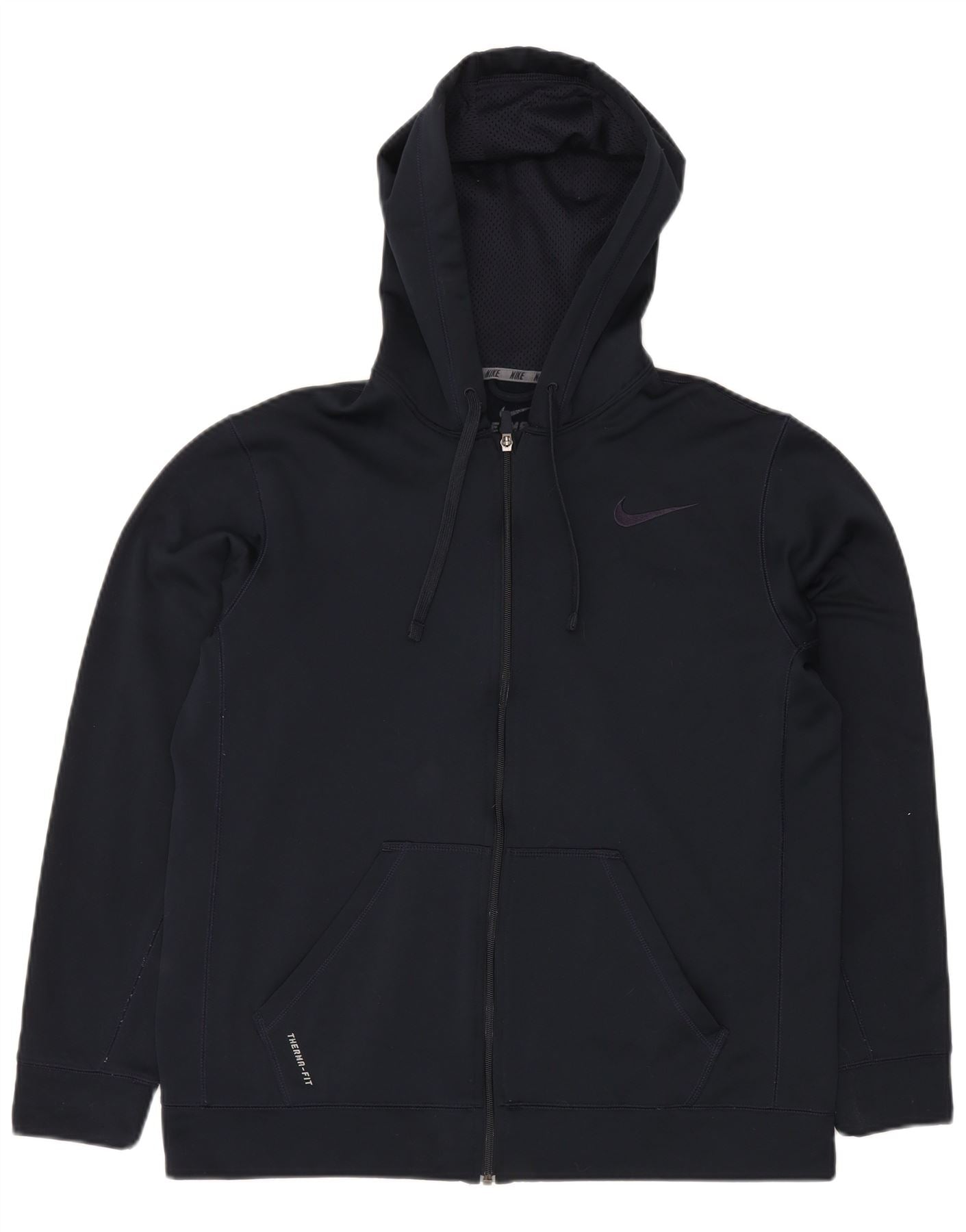 NIKE Felpa con cappuccio e zip Therma-Fit da uomo, grande, in poliestere blu navy
