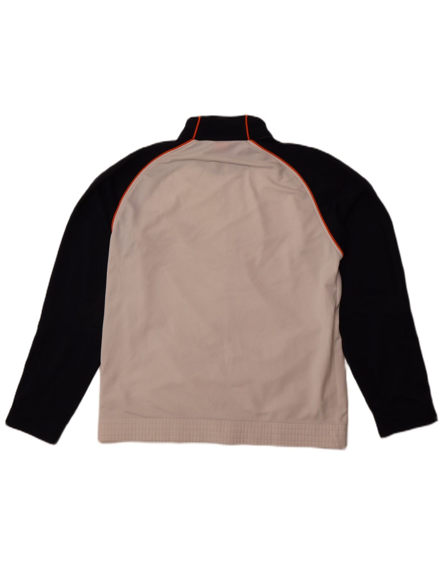 - Descrizione dell'IA: Questa giacca superiore della tuta da uomo Nike è realizzata in tessuto a maglia di poliestere liscio. Presenta un sorprendente design a blocchi di colore in bianco sporco e blu navy, accentuato da bordini arancioni. Lo scollo con colletto e la chiusura full zip offrono un look atletico classico. Le maniche lunghe e la vestibilità regolare garantiscono comfort e facilità di movimento. Tasche pratiche e un discreto dettaglio con logo completano questo versatile stile sportivo.
