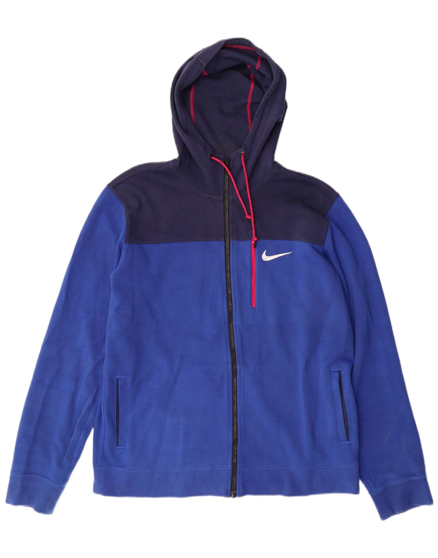 NIKE Felpa con cappuccio e zip da uomo, grande, in cotone color block blu