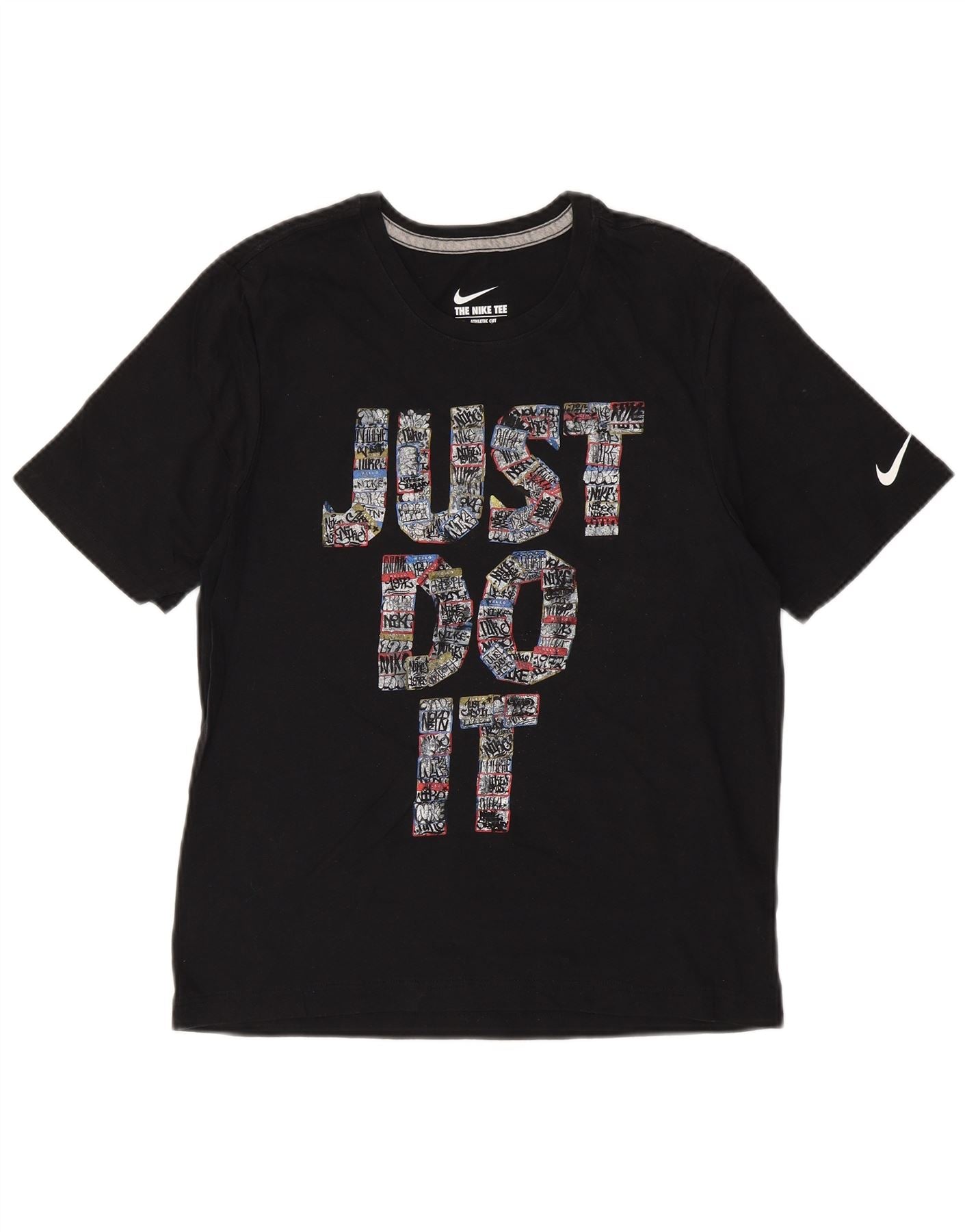 T-shirt grafica NIKE da donna con taglio atletico, taglia UK 12, cotone nero medio