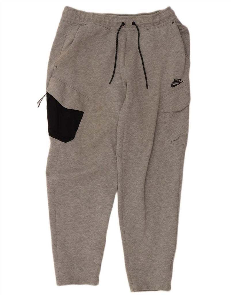 NIKE Womens Cargo Tracksuit Trousers UK 12 Medium Grey Colourblock Cotton