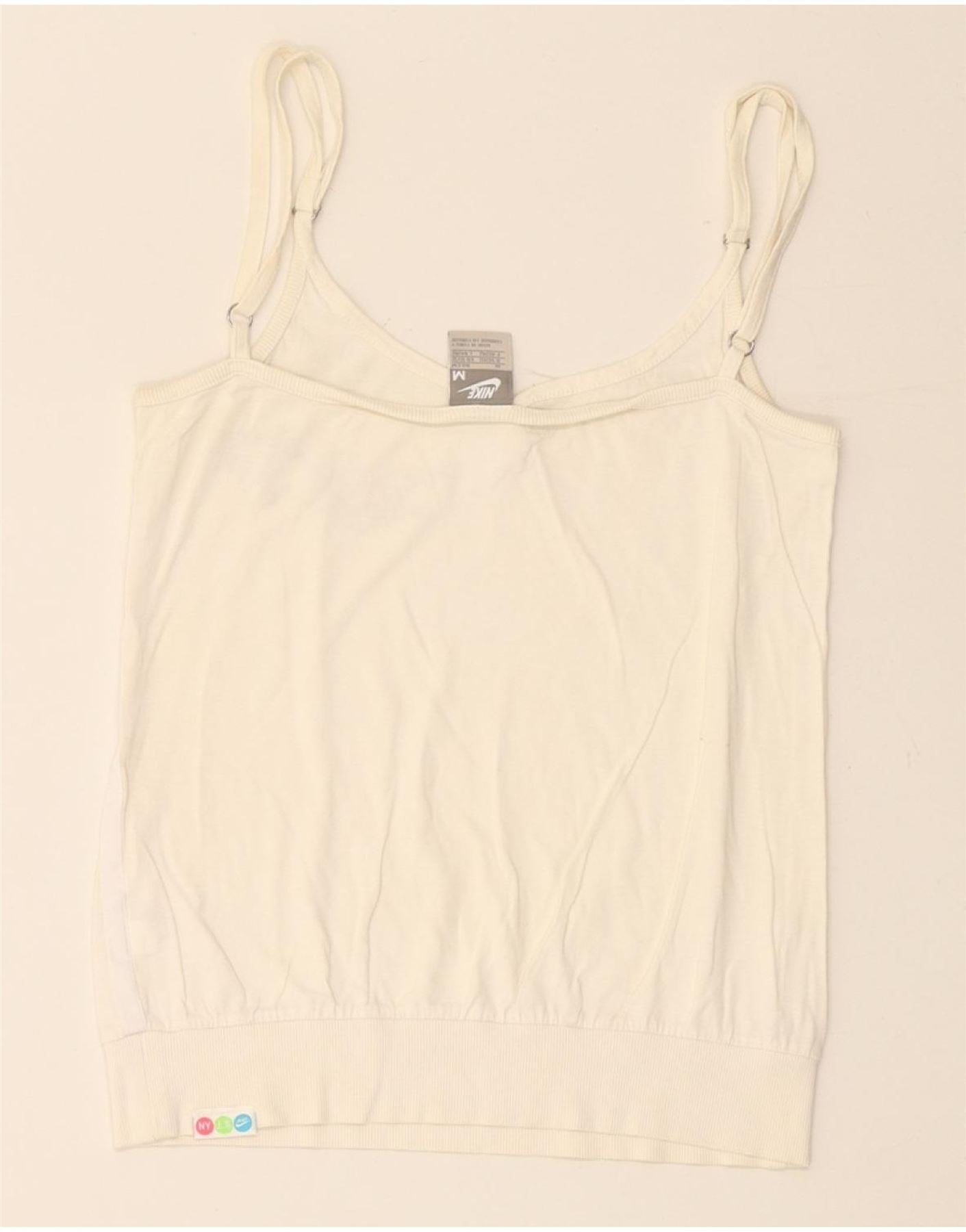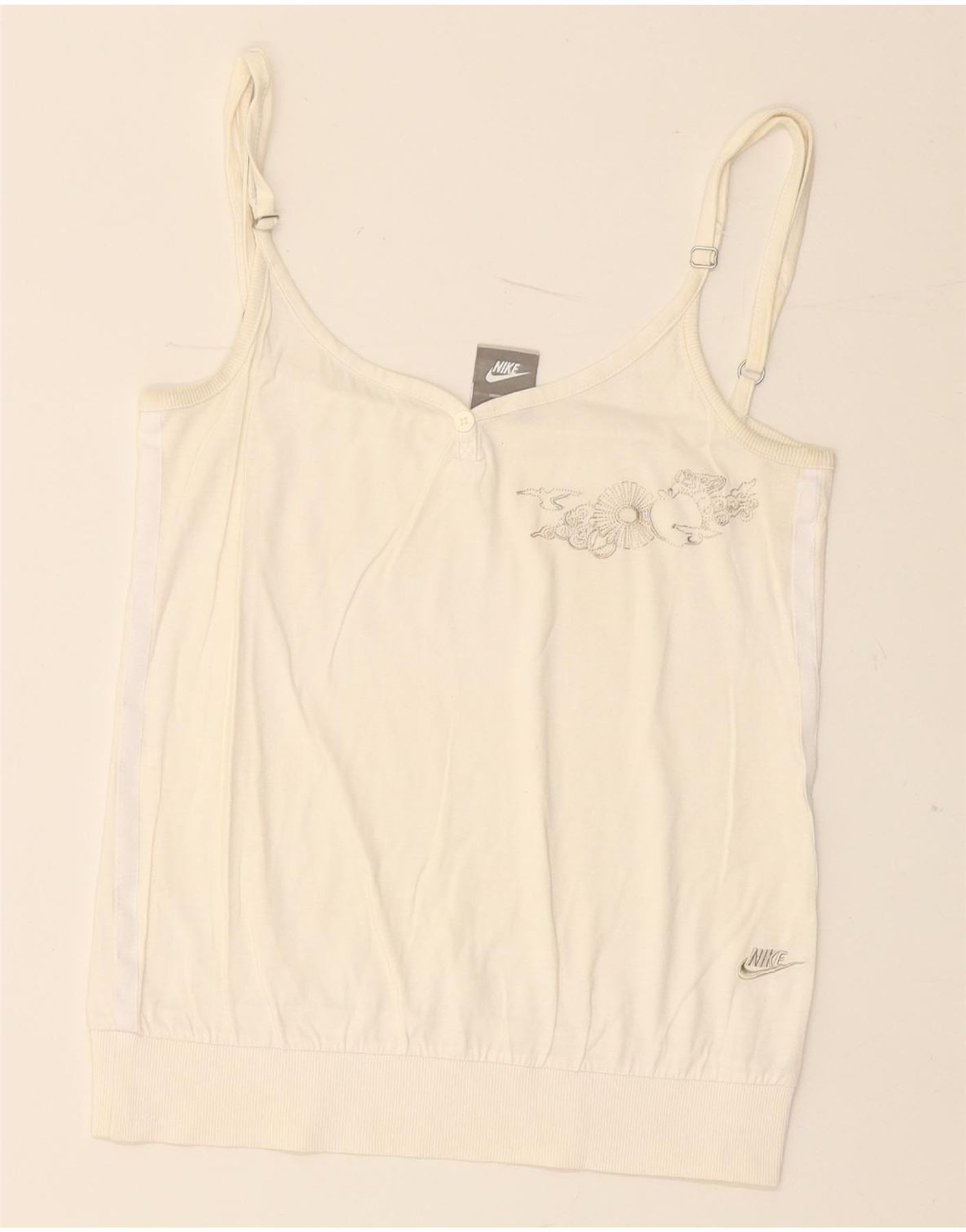 Top corto con grafica NIKE da donna UK 10/12 medio bianco sporco