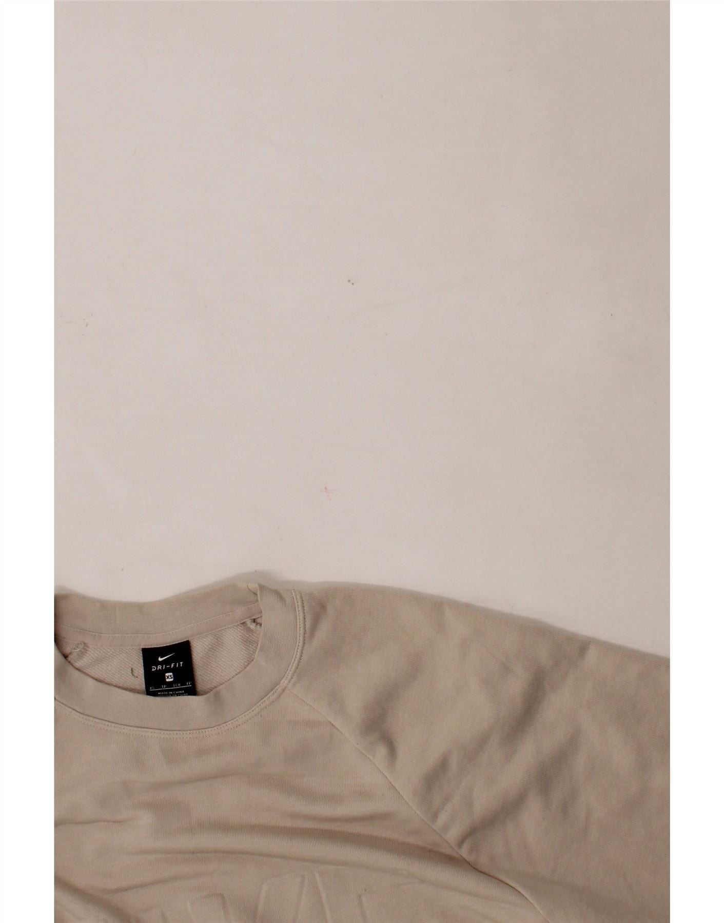 NIKE Womens Dri Fit Crop Graphic Sweatshirt Jumper UK 6 XS Beige Polyester