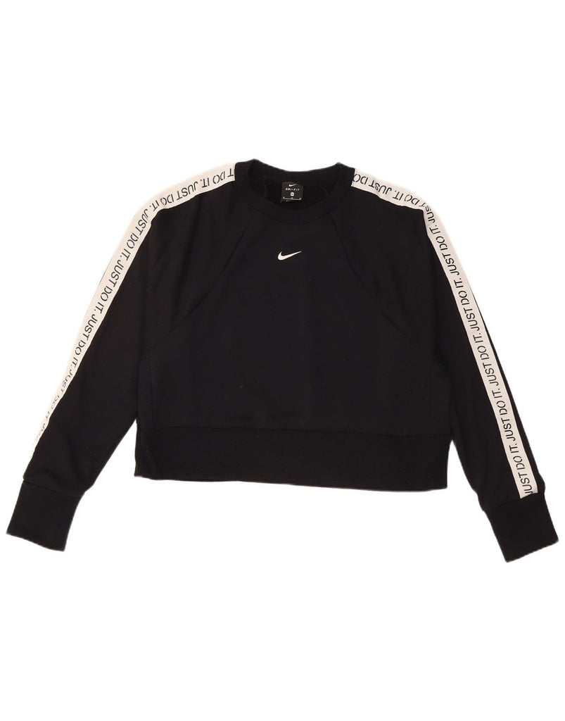 NIKE Womens Dri Fit Crop Sweatshirt Jumper UK 14 Medium Black Colourblock