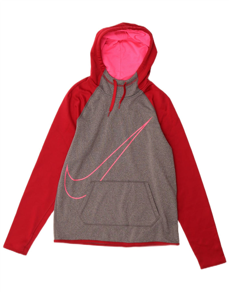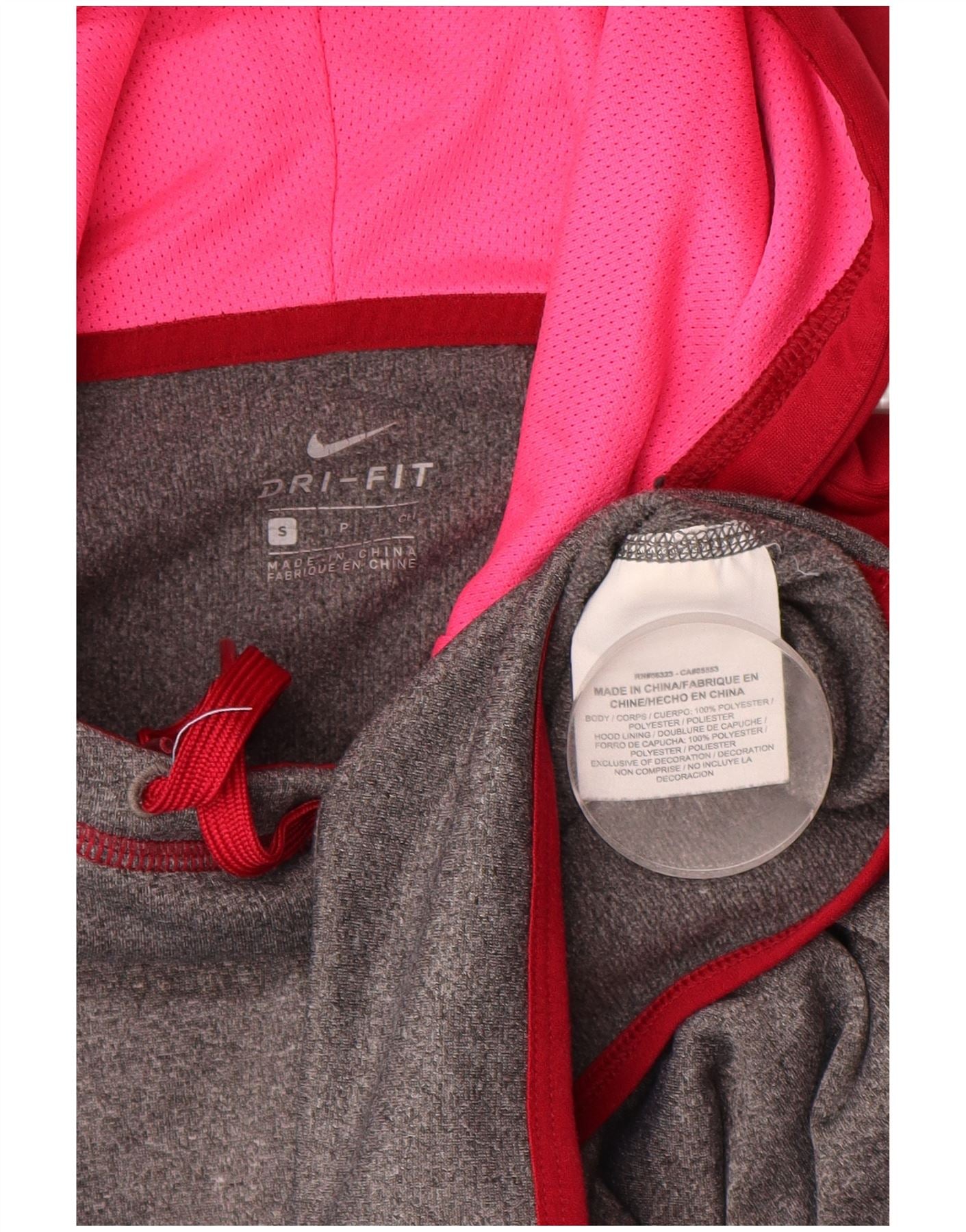 NIKE Felpa con cappuccio grafica Dri Fit da donna UK 10 Small Grigio Colourblock