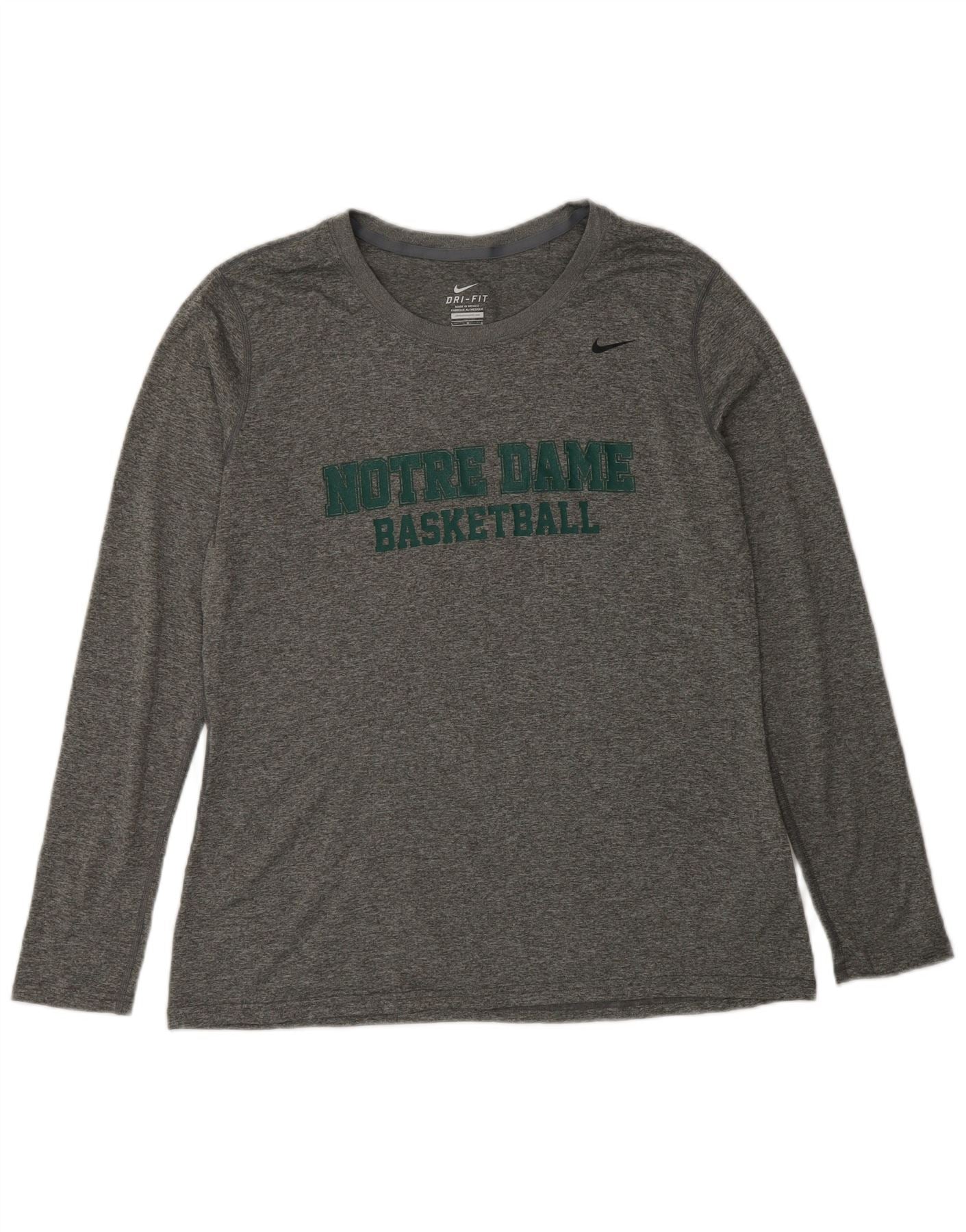 Nike Dri Fit Graphic Top da donna manica lunga UK 16 Large Grey Flecked