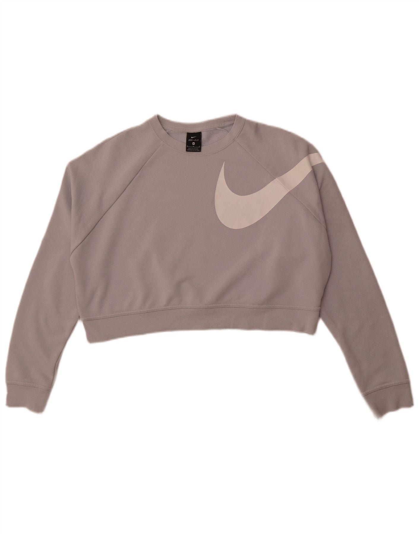 NIKE Womens Dri Fit Oversized Graphic Sweatshirt Jumper UK 14 Medium Grey