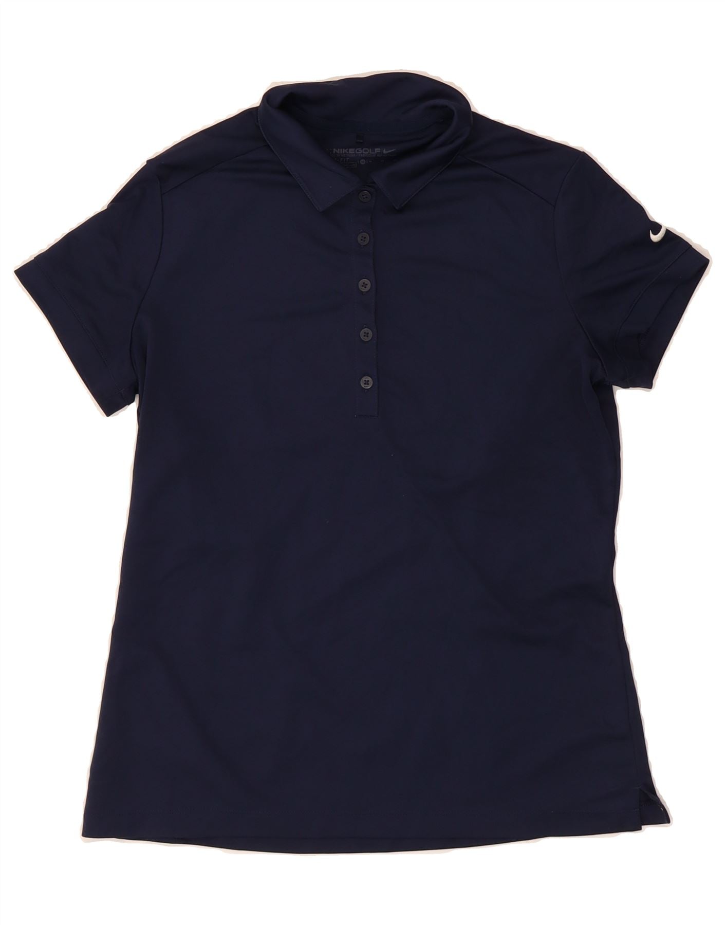 NIKE Womens Dri Fit Polo Shirt UK 12 Medium Navy Blue Polyester