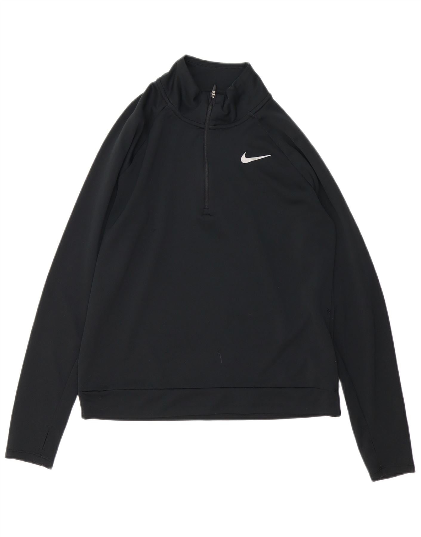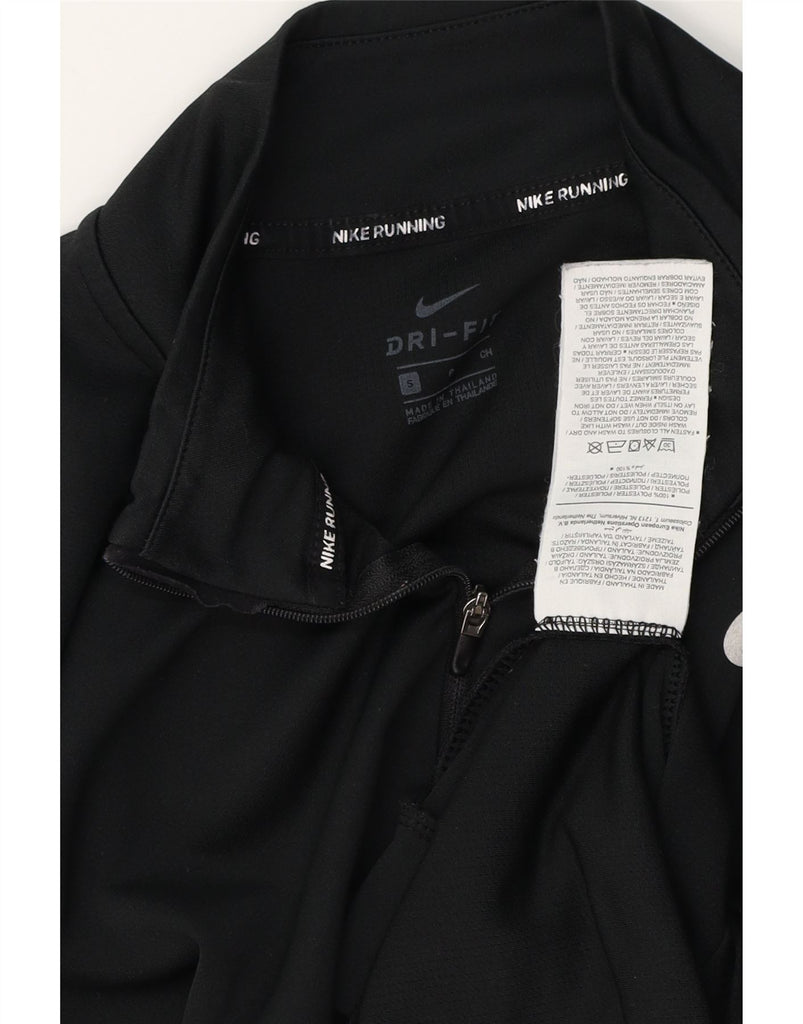 NIKE Top da tuta pullover con zip e collo Dri Fit da donna UK 10 Small Nero