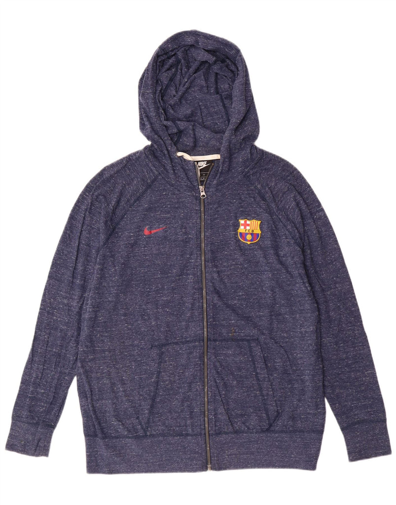 NIKE Womens FCB Graphic Zip Hoodie Sweater UK 18 XL Blue Flecked Cotton