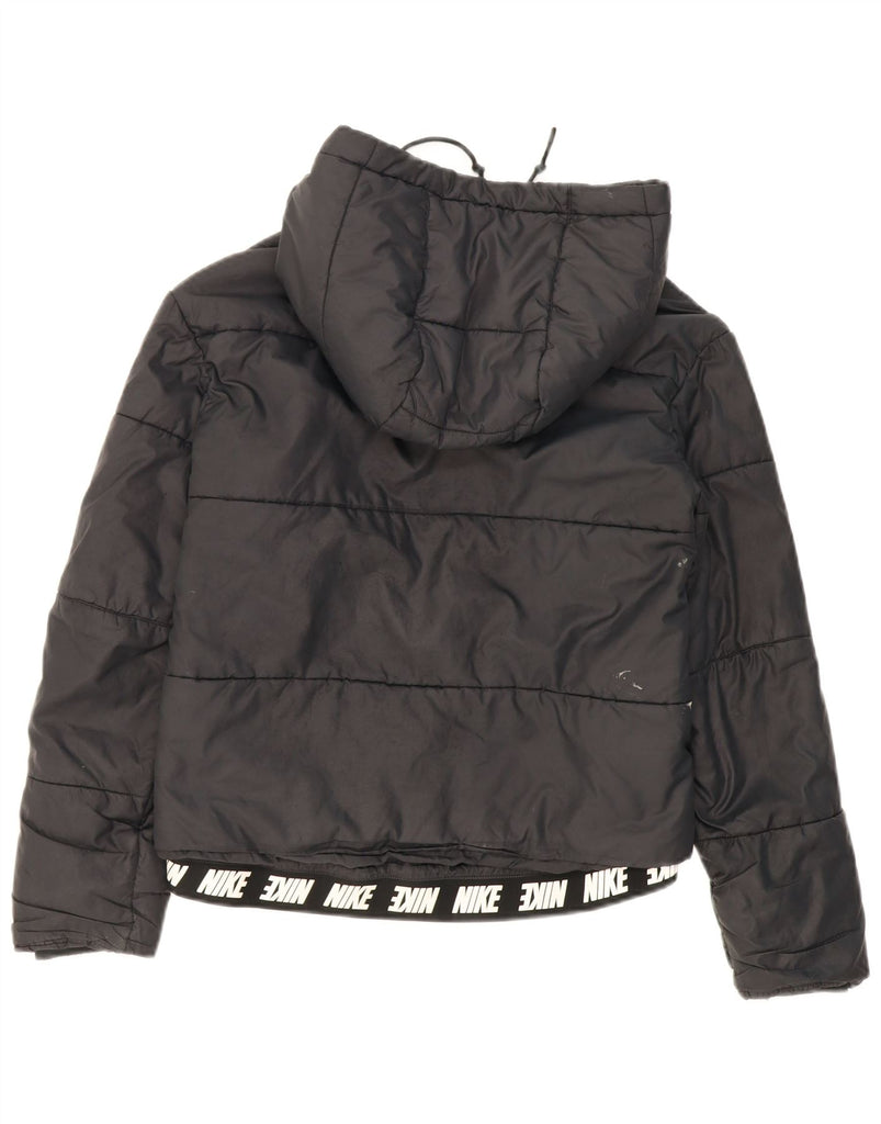 NIKE Womens Graphic Hooded Padded Jacket UK 10 Small Black Polyester