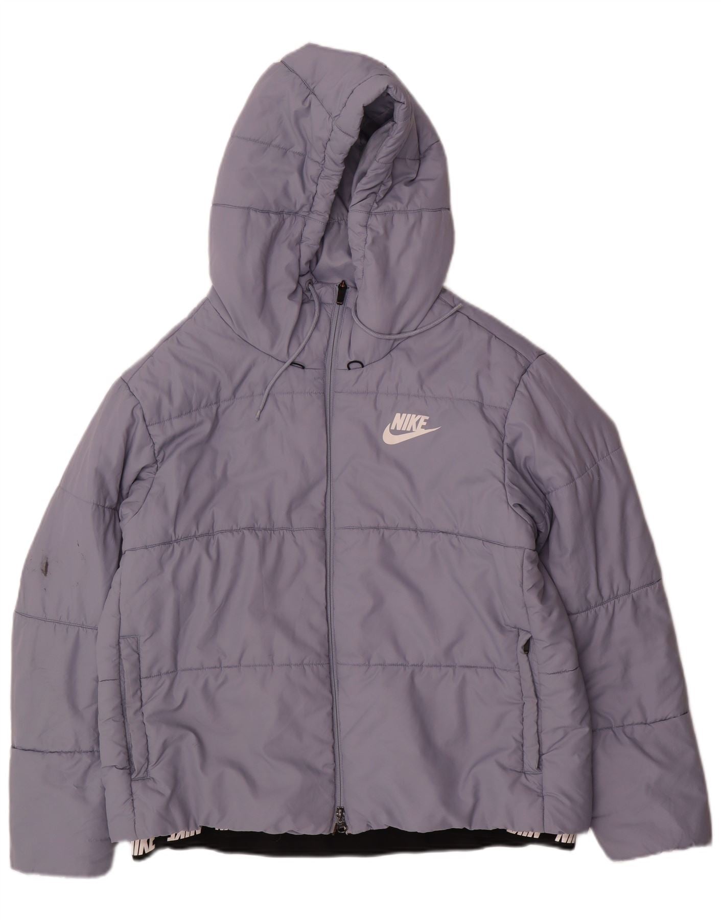 Giacca imbottita con cappuccio con grafica NIKE da donna UK 18 XL poliestere blu