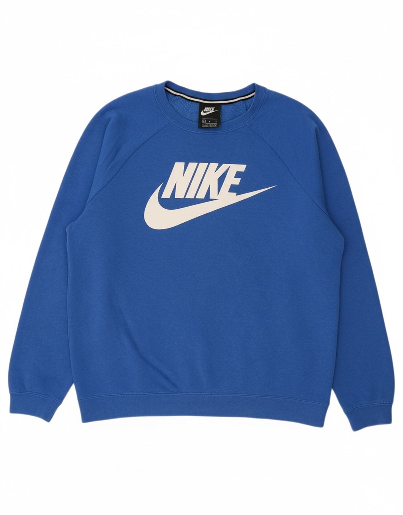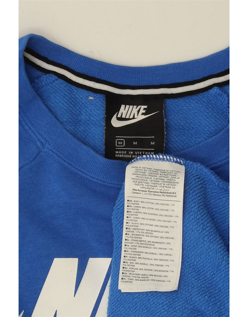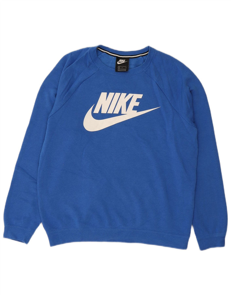 NIKE Womens Graphic Sweatshirt Jumper UK 14 Medium Blue Cotton