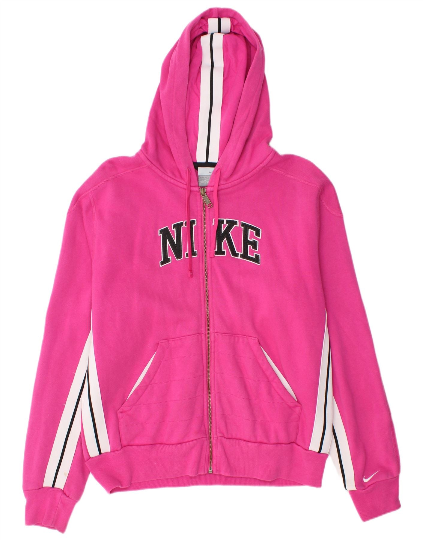 NIKE Womens Graphic Zip Hoodie Sweater UK 16/18 XL Pink Colourblock Cotton