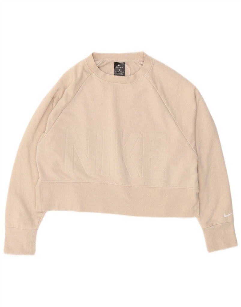 NIKE Womens Oversized Crop Graphic Sweatshirt Jumper UK 6 XS Off White