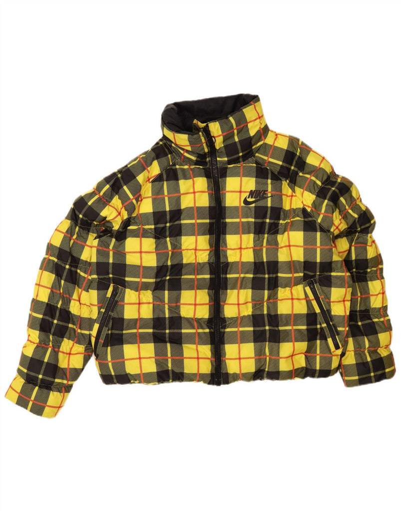 NIKE Womens Oversized Crop Padded Jacket UK 14 Medium Yellow Check