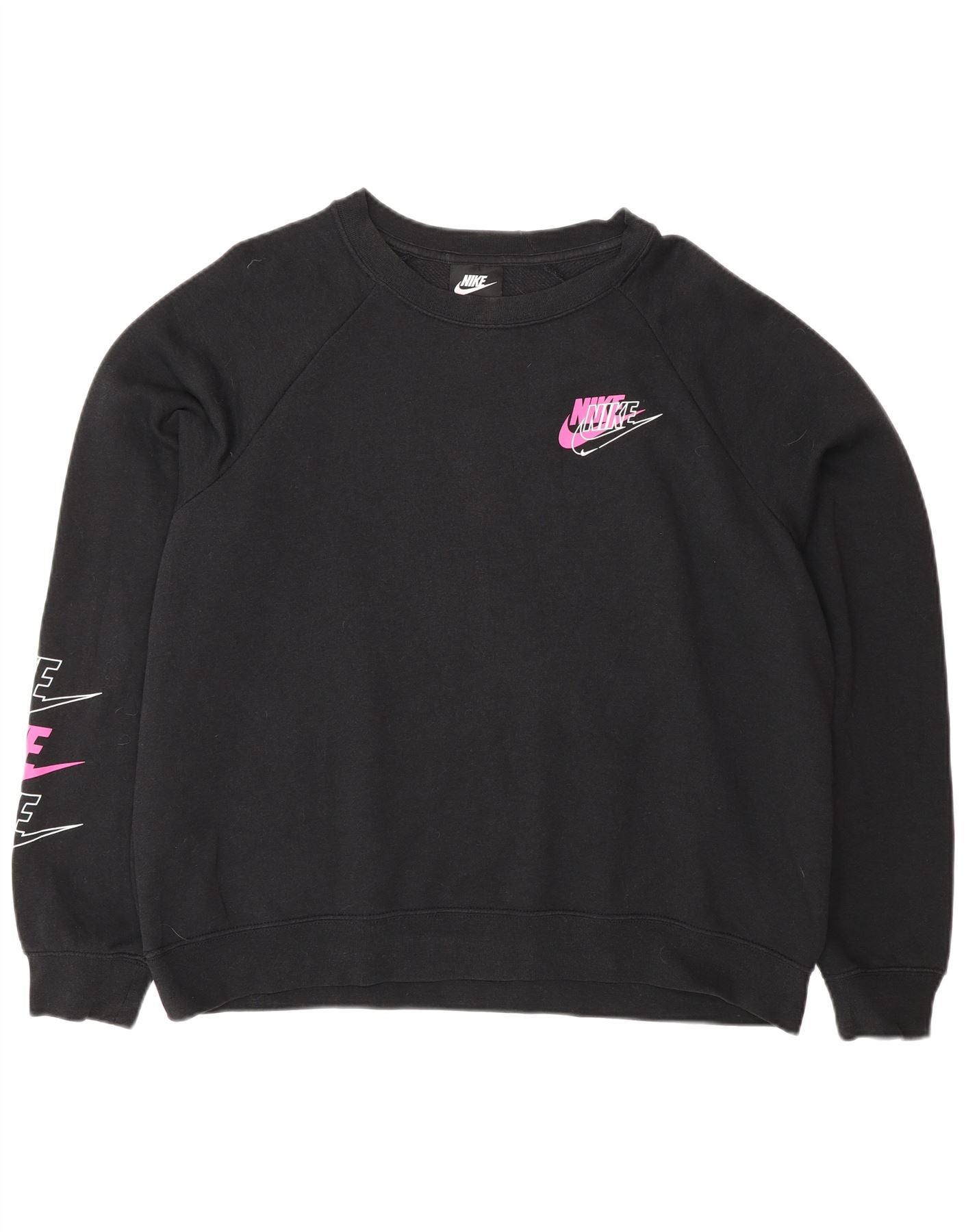 Felpa con grafica oversize da donna Nike, maglione UK 16, grande cotone nero