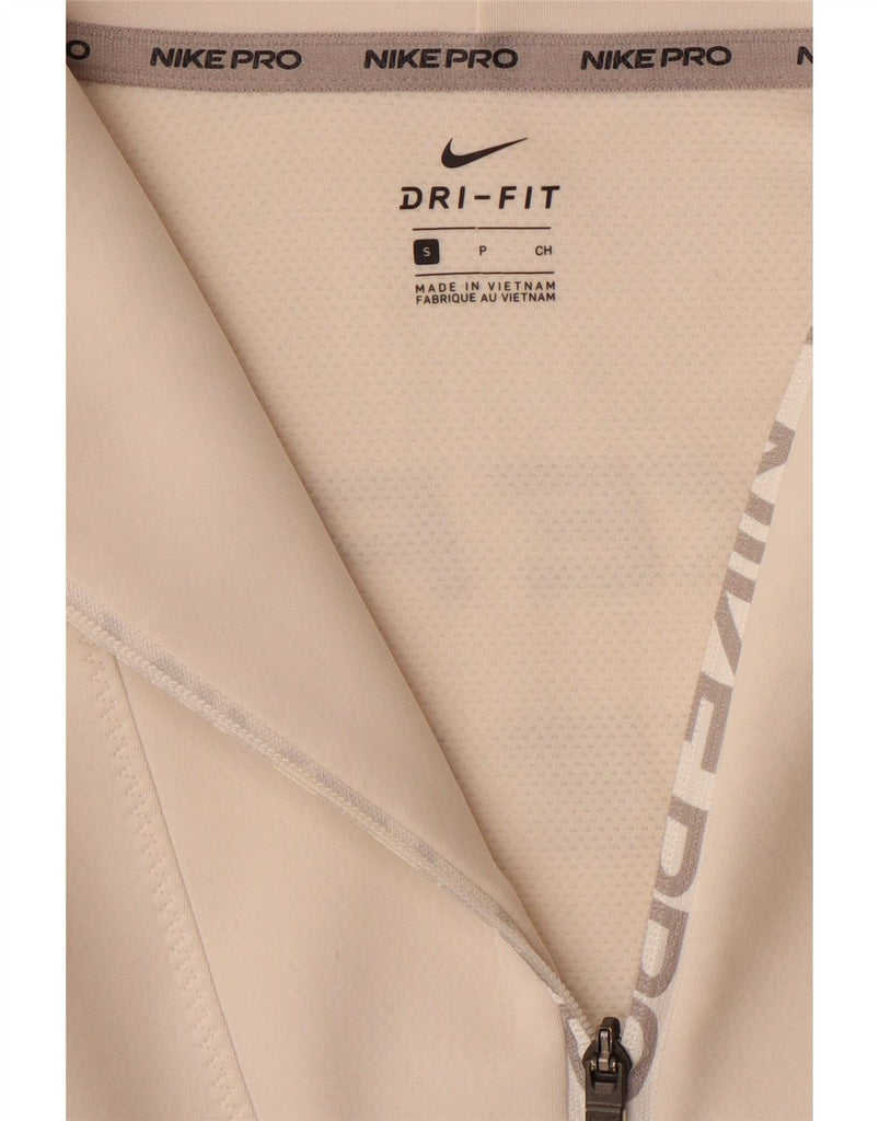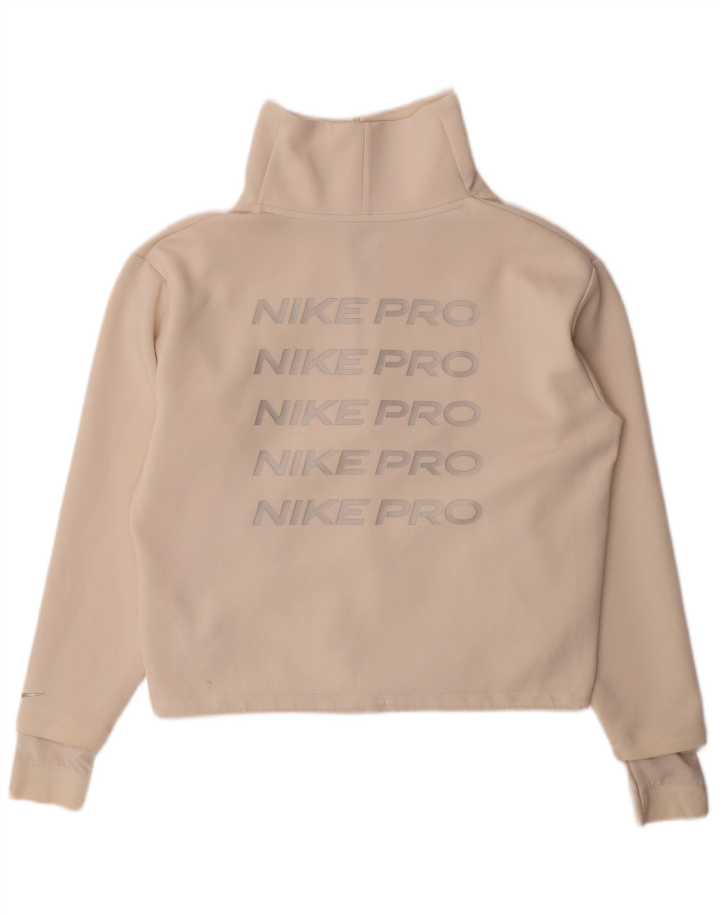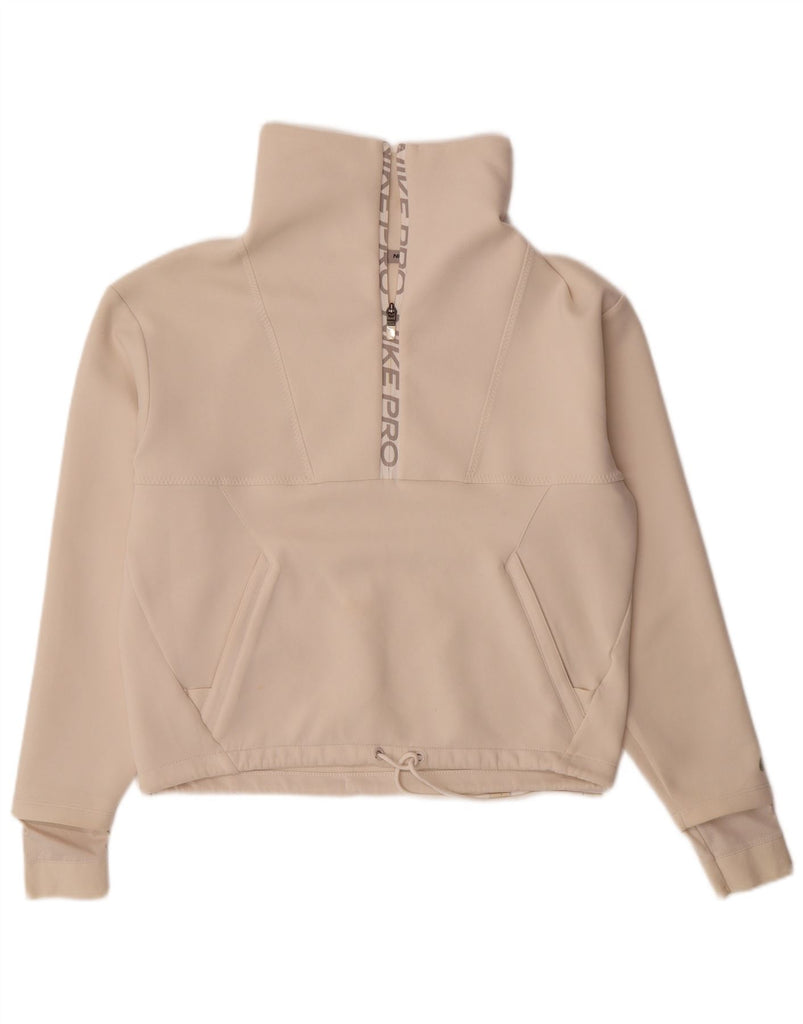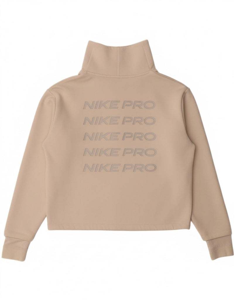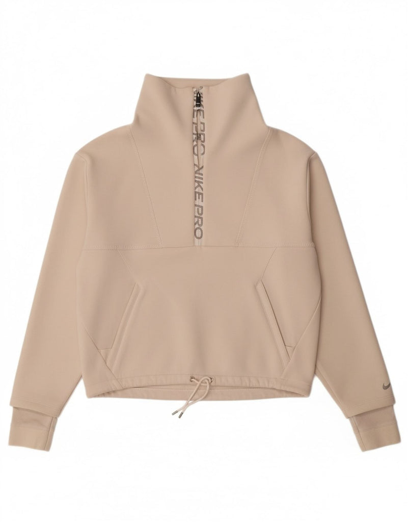 NIKE Womens Oversized Graphic Zip Neck Sweatshirt Jumper UK 10 Small Beige