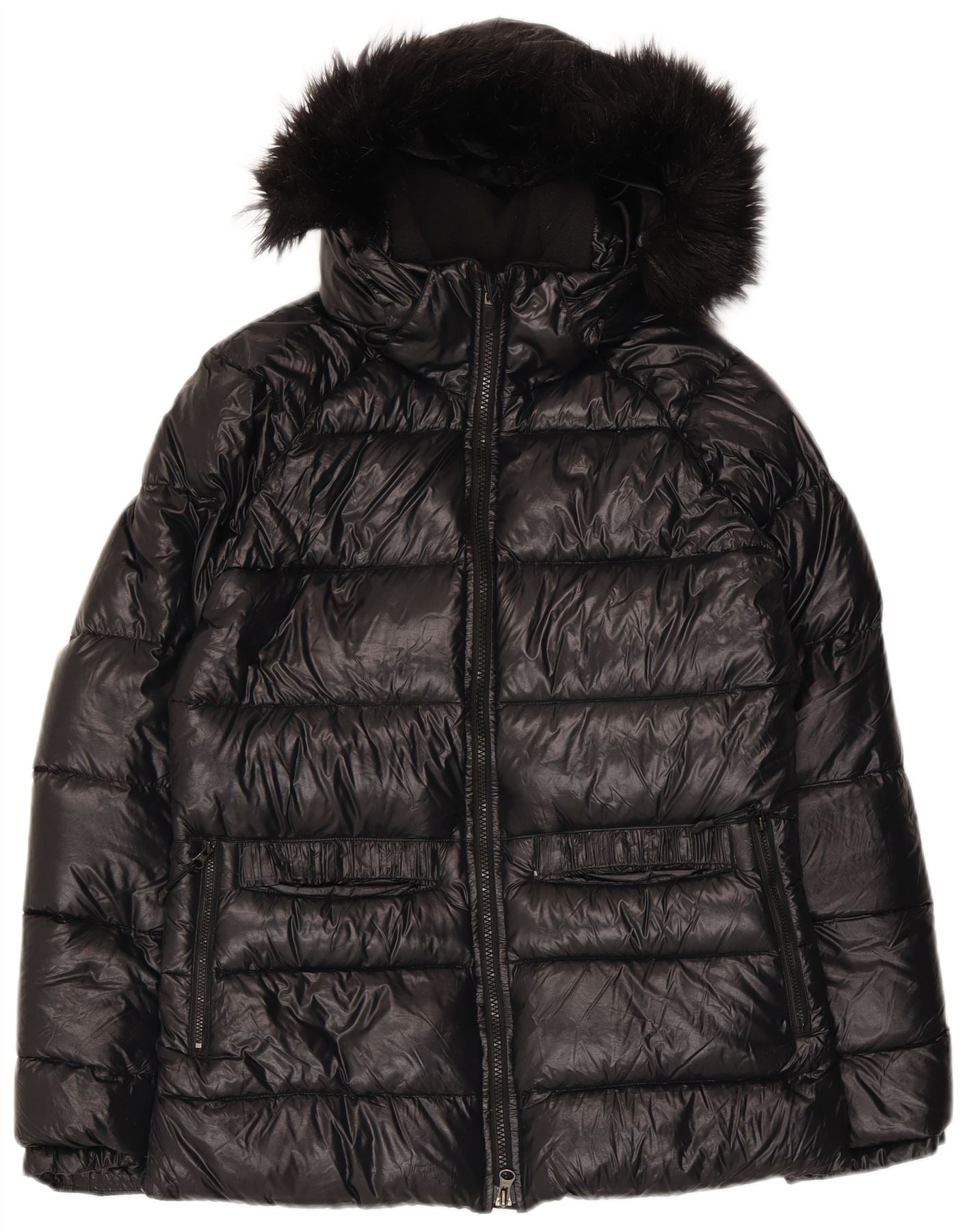 NIKE Womens Oversized Hooded Padded Jacket UK 6/8 XS Black Nylon