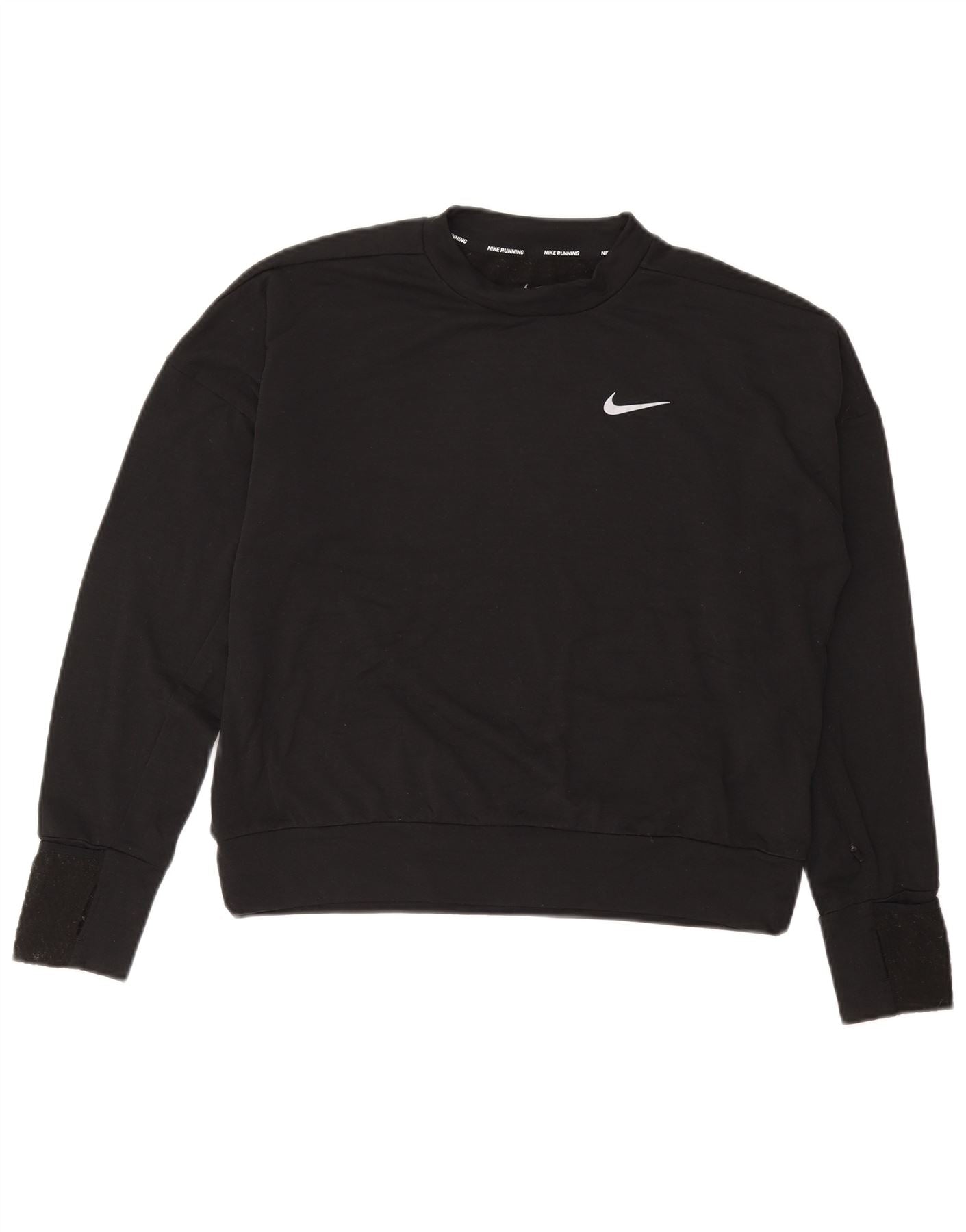 NIKE Top da corsa oversize da donna a maniche lunghe UK 10 Small Nero Poliestere