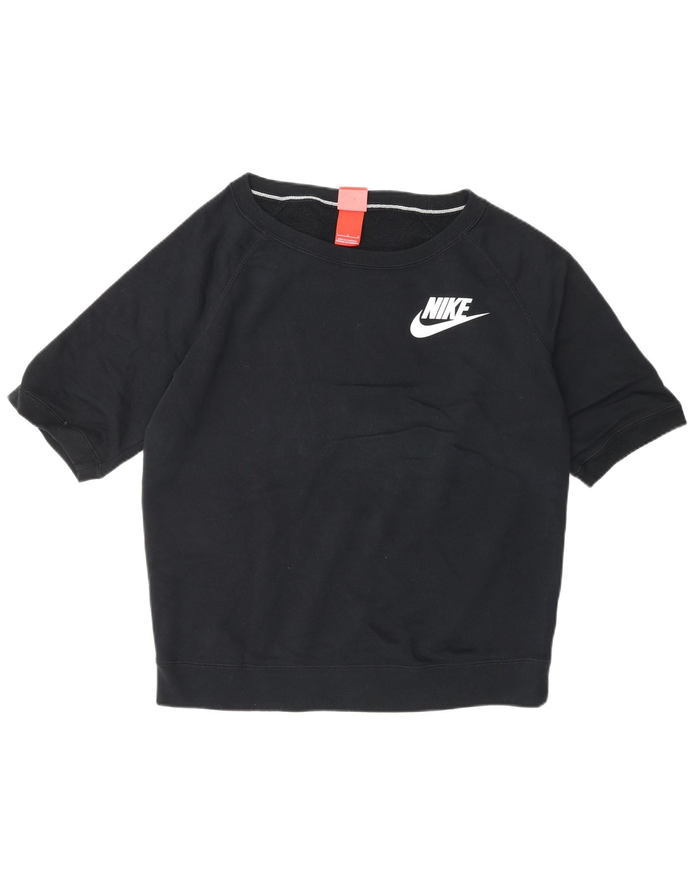 Felpa da donna a maniche corte NIKE, maglione UK 16, grande, cotone nero