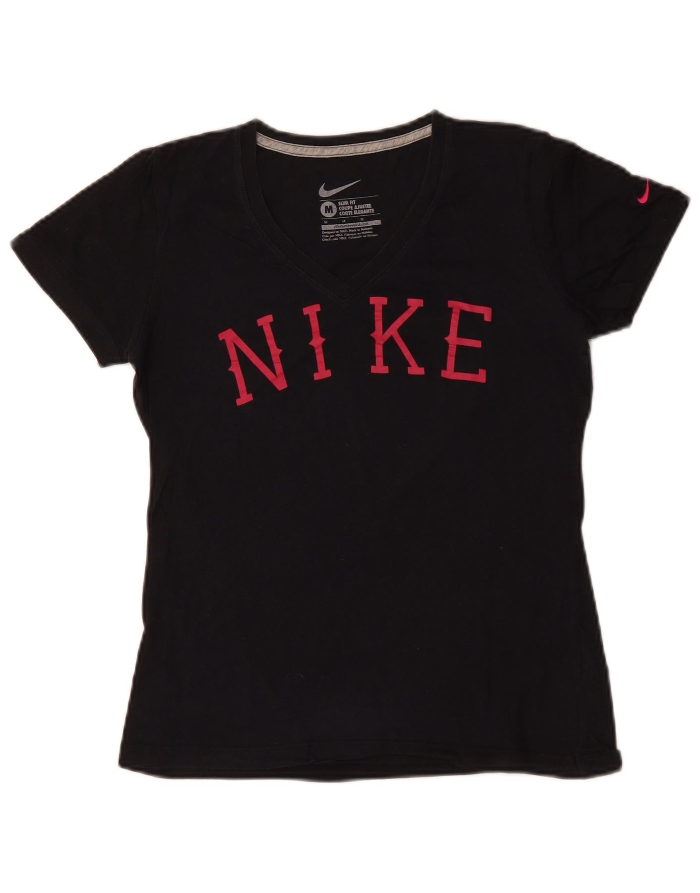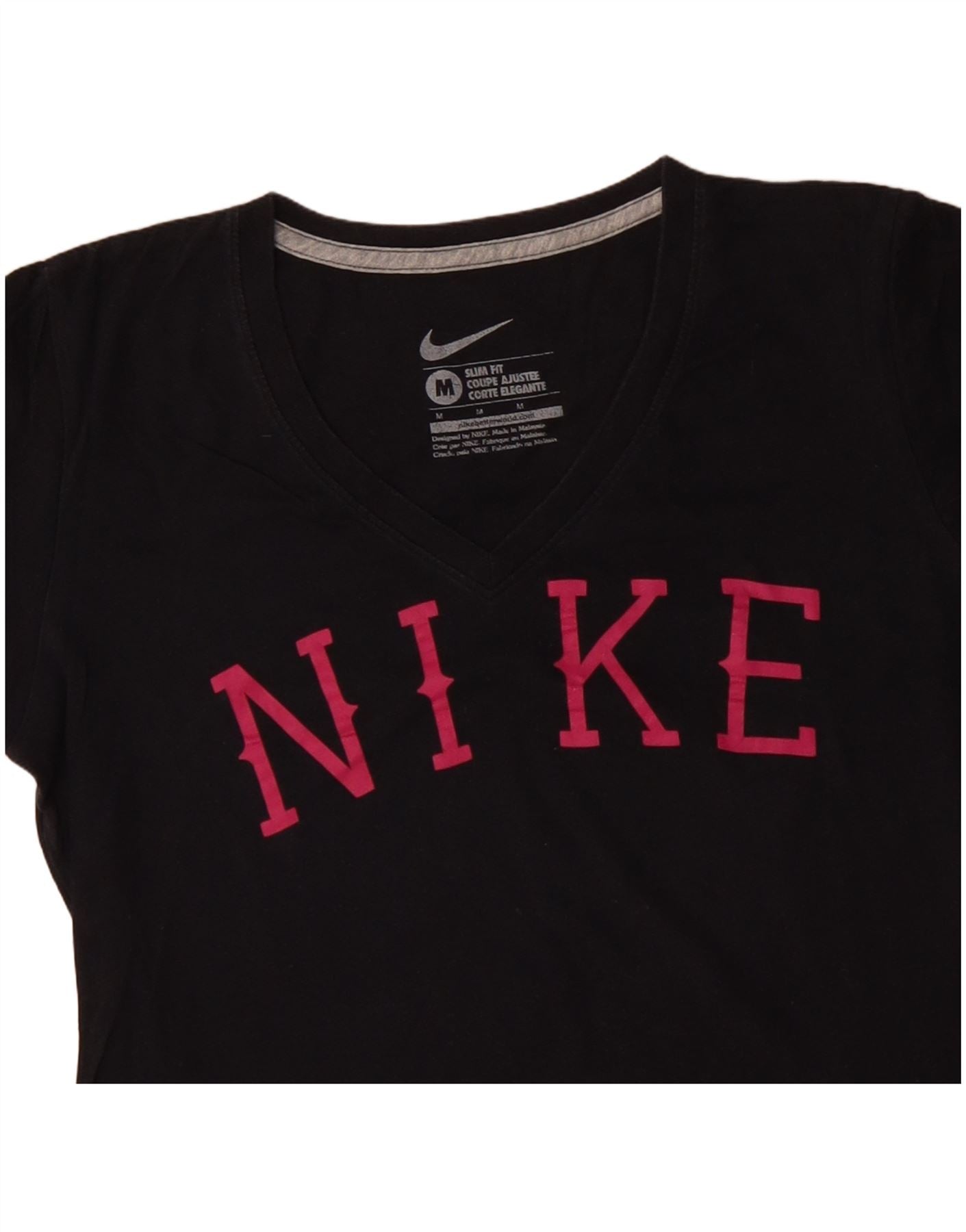 T-shirt grafica NIKE da donna slim fit, taglia UK 12, cotone nero medio