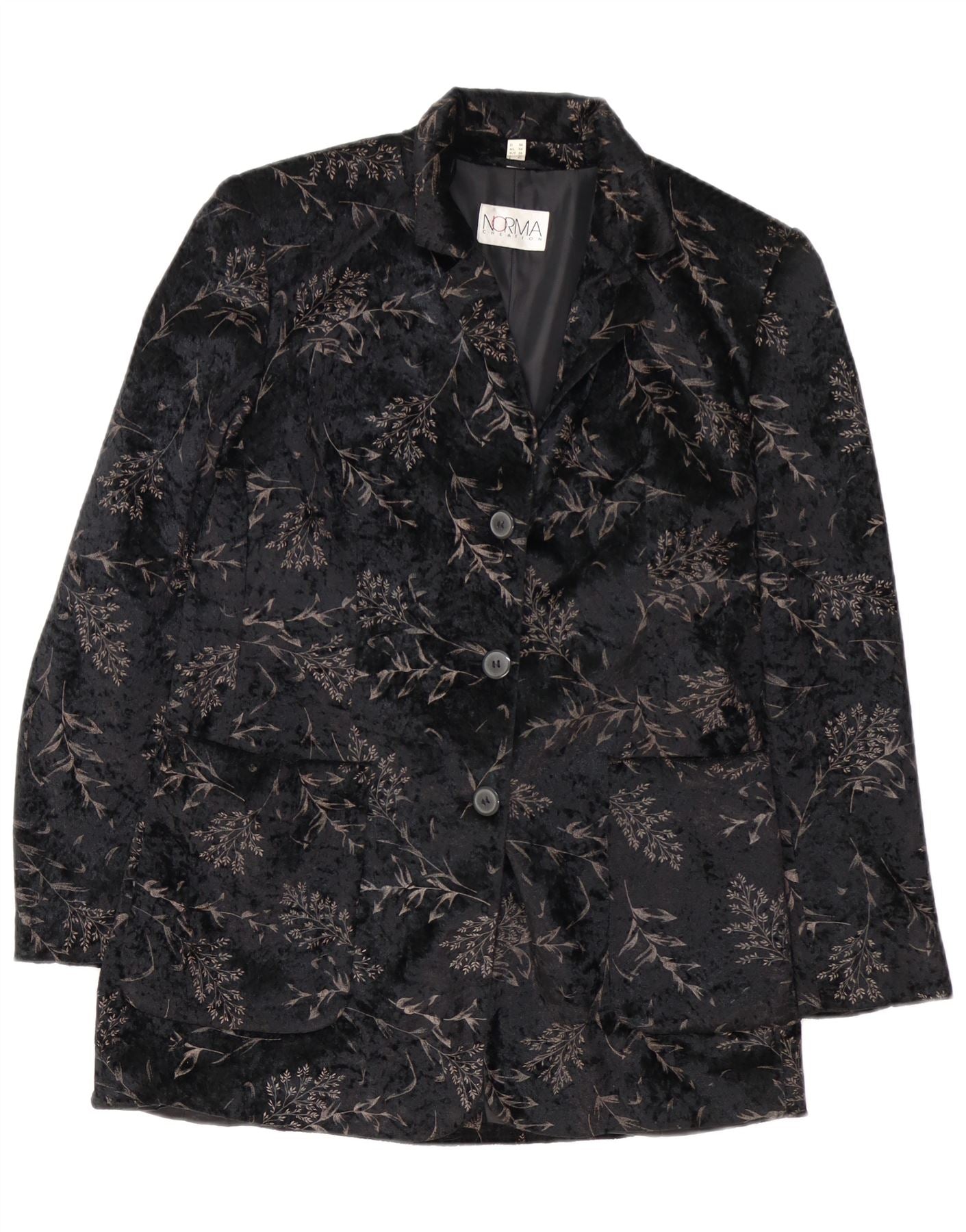 Giacca blazer a 3 bottoni lunga da donna NORMA UK 10 piccolo floreale nero