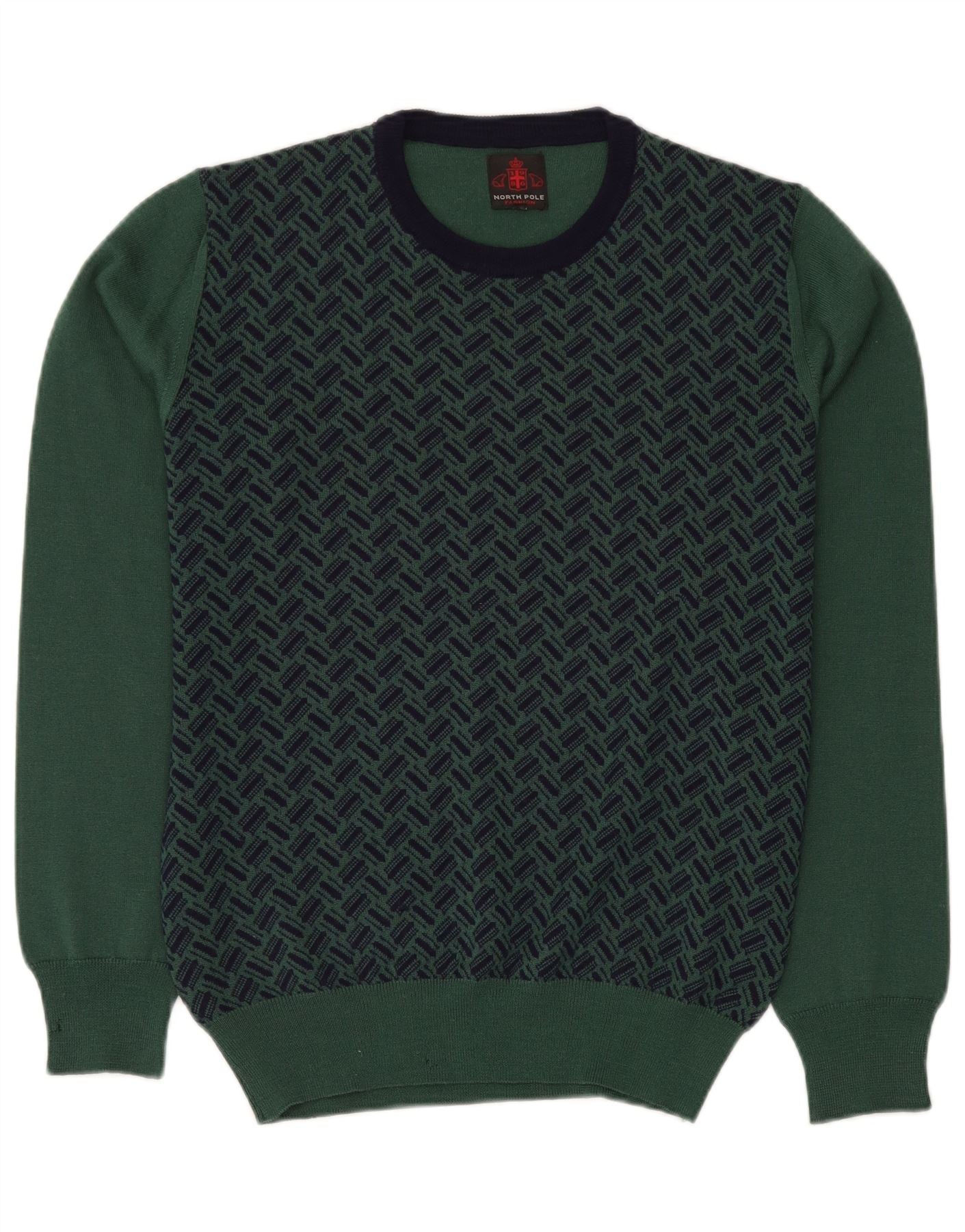 NORTH POLE Maglione da uomo girocollo in lana geometrica verde medio