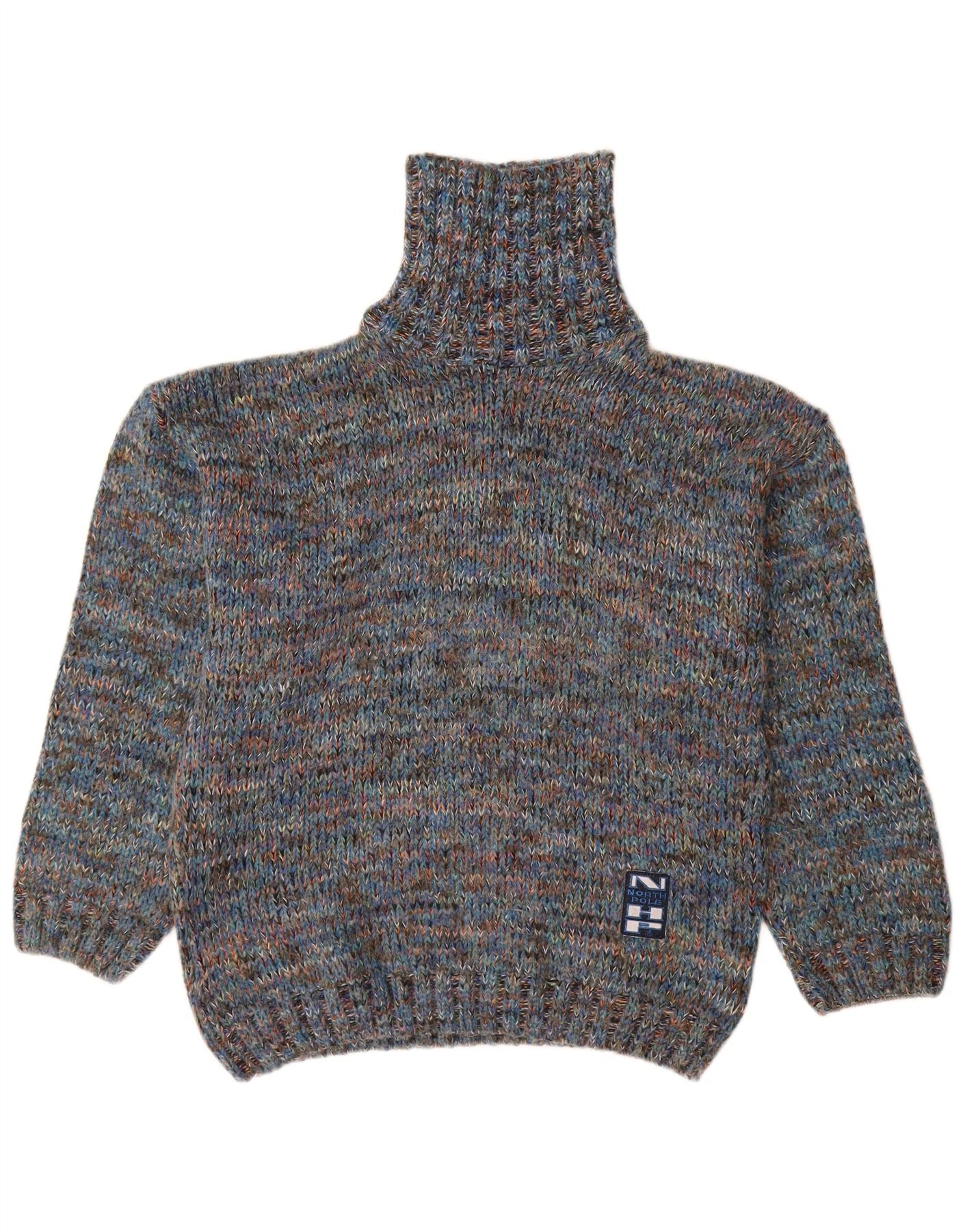 NORTH POLE Maglione da uomo a collo alto in lana screziata blu medio