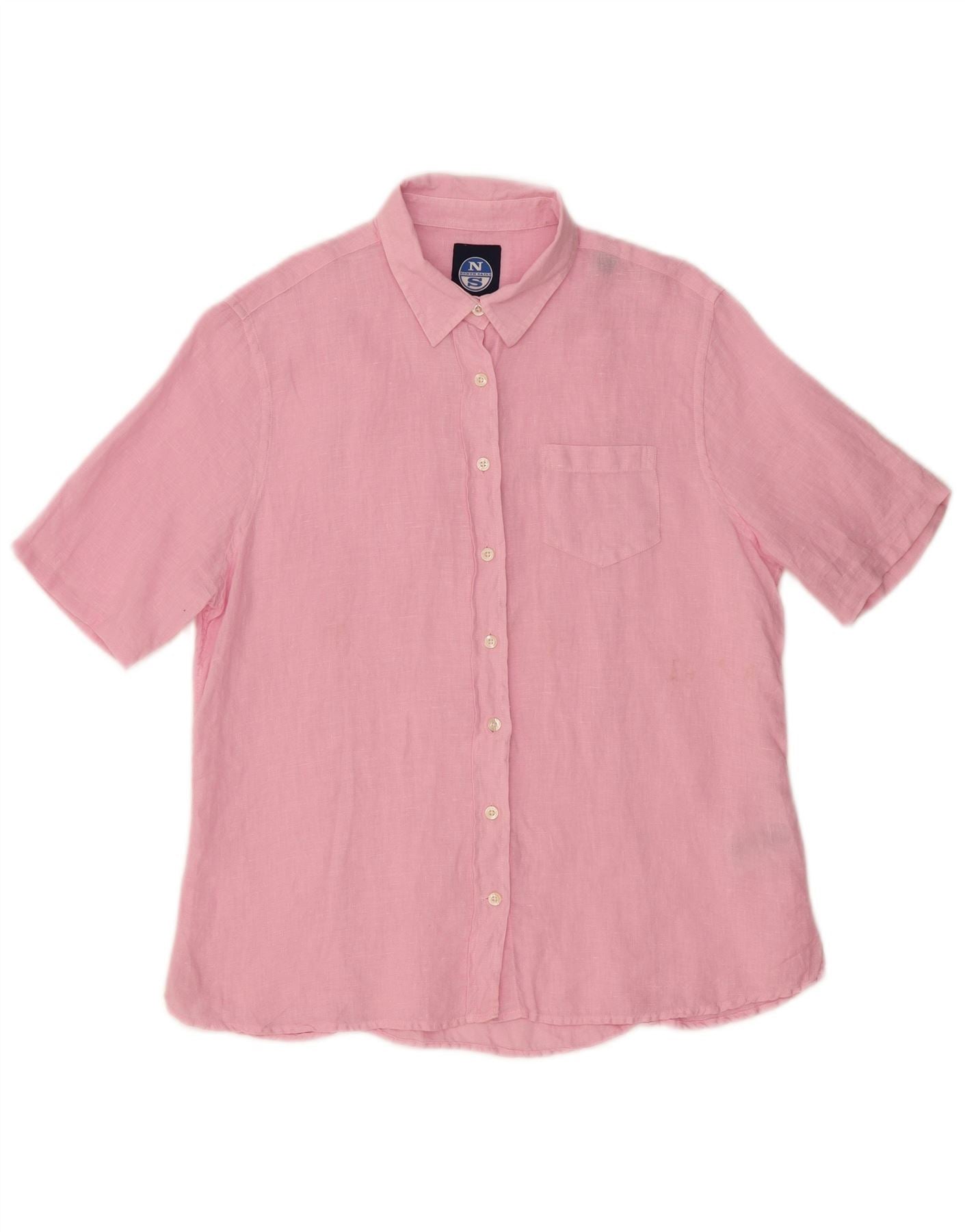 Camicia a maniche corte da donna NORTH SAILS UK 14 Lino rosa medio