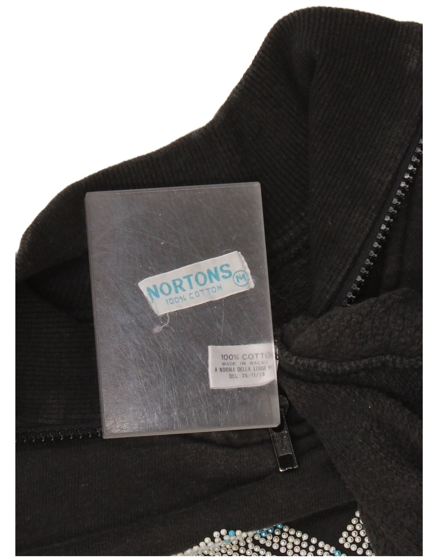 NORTONS Felpa con collo con zip grafica da donna Maglione UK 14 Medio Nero