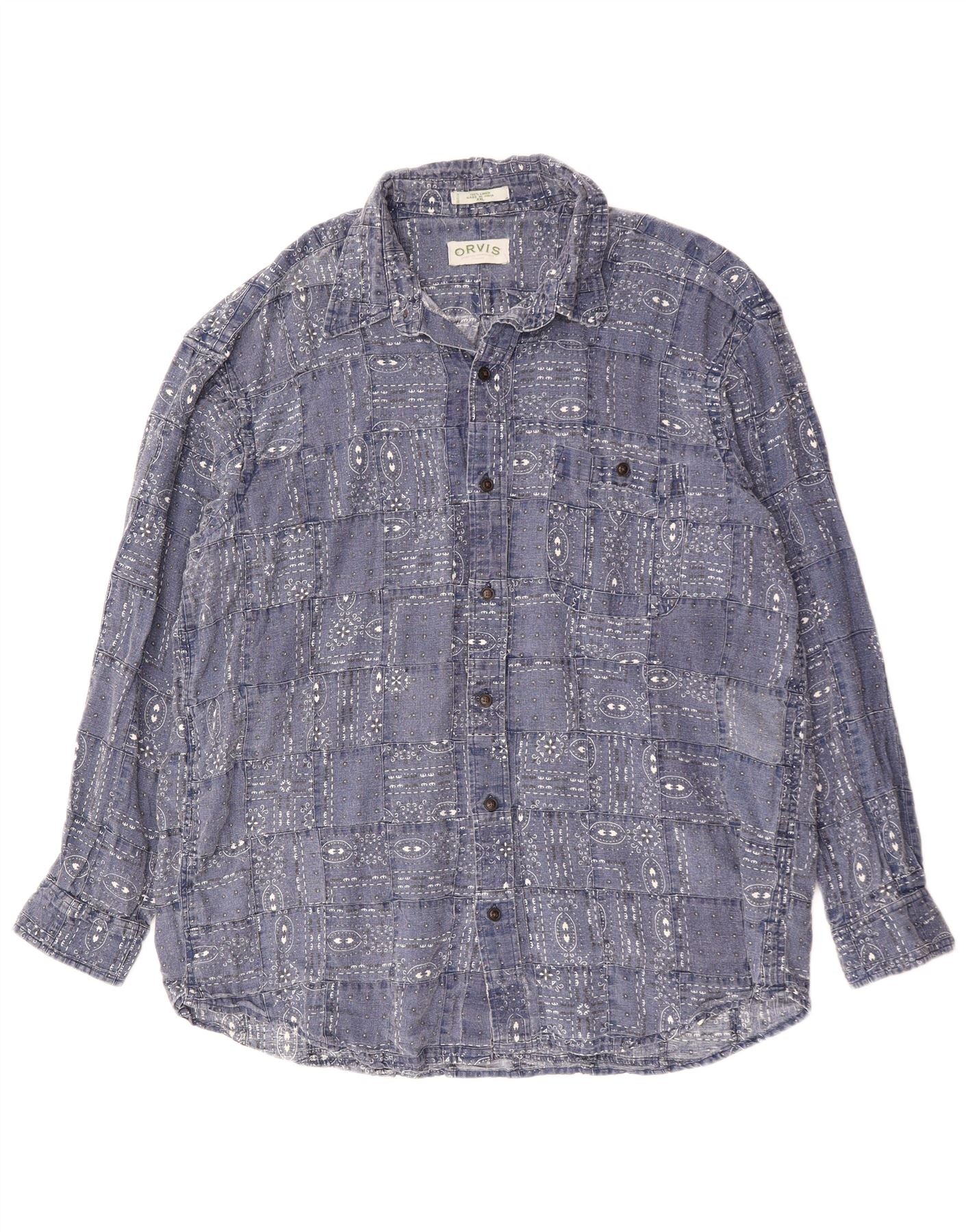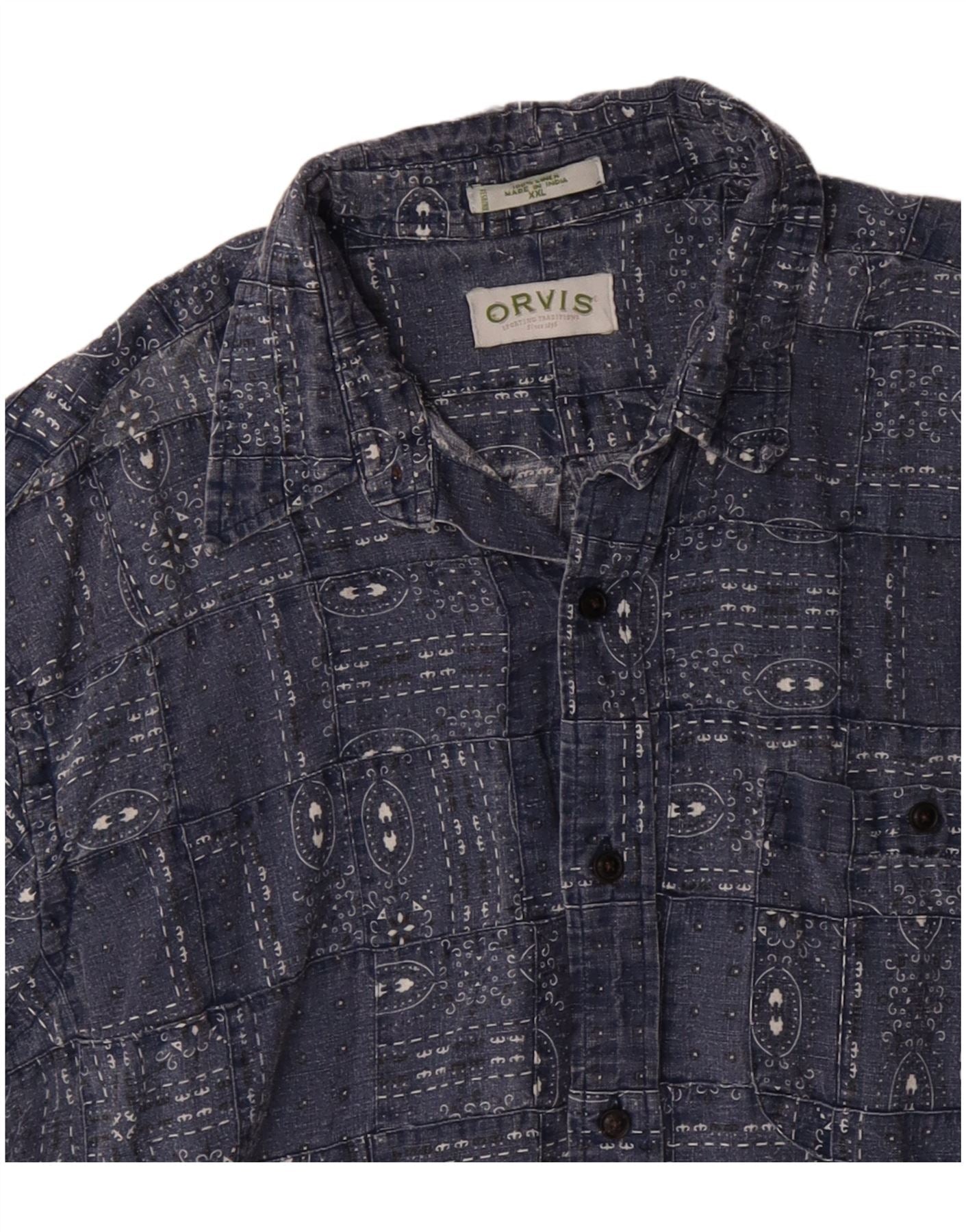 Camicia da uomo ORVIS 2XL Lino geometrico blu navy