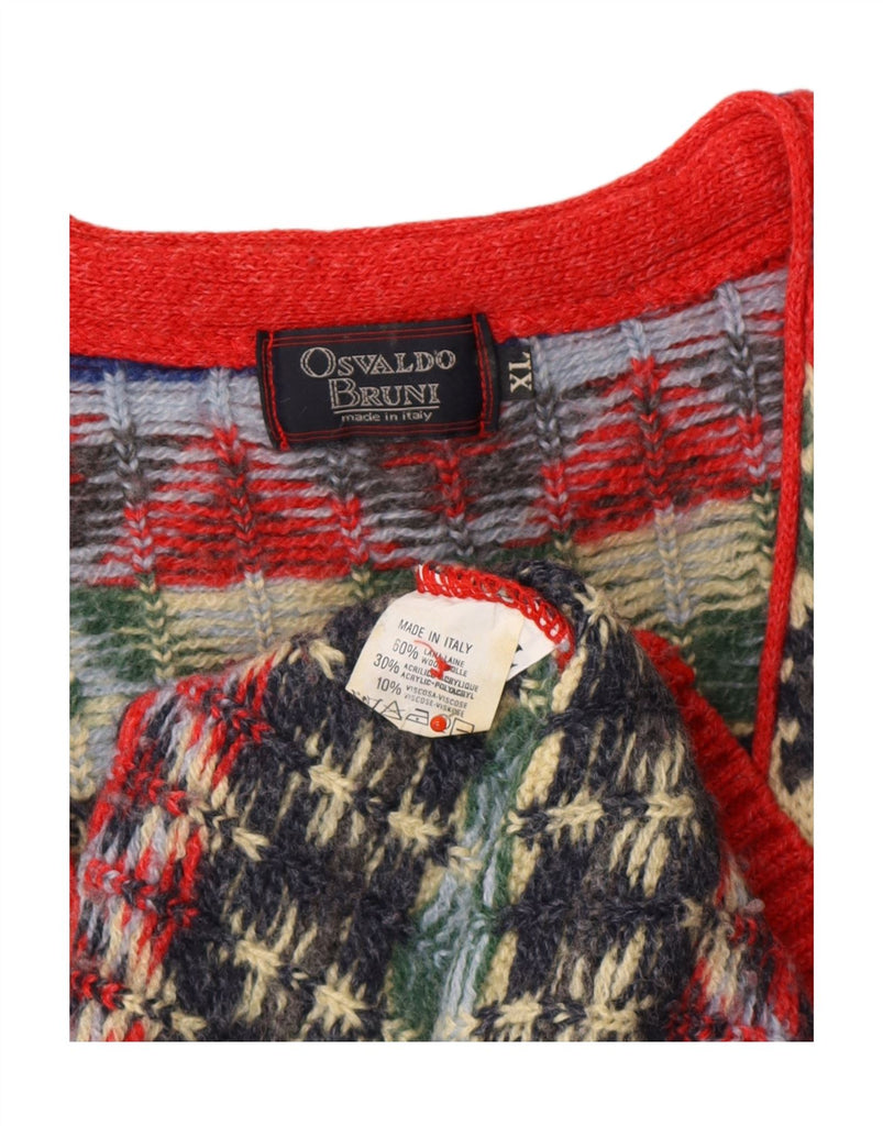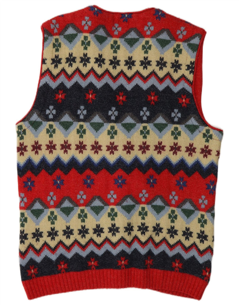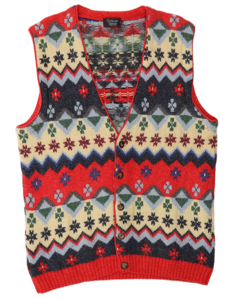 OSVALDO BRUNI Maglione cardigan senza maniche da uomo XL multicolore Fair Isle