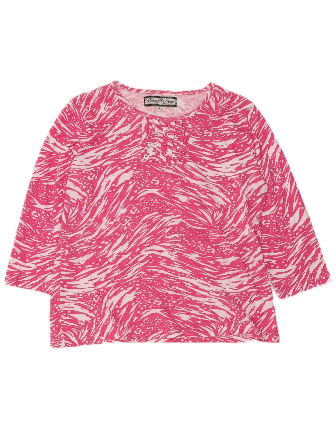 PACO BOUTIQUE Top da donna con motivo astratto manica 3/4 UK 14 grande rosa