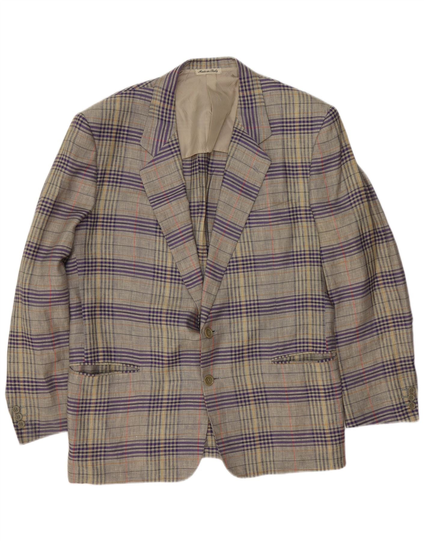 PAL ZILERI Mens 2 Button Blazer Jacket IT 52 XL Grey Check Linen