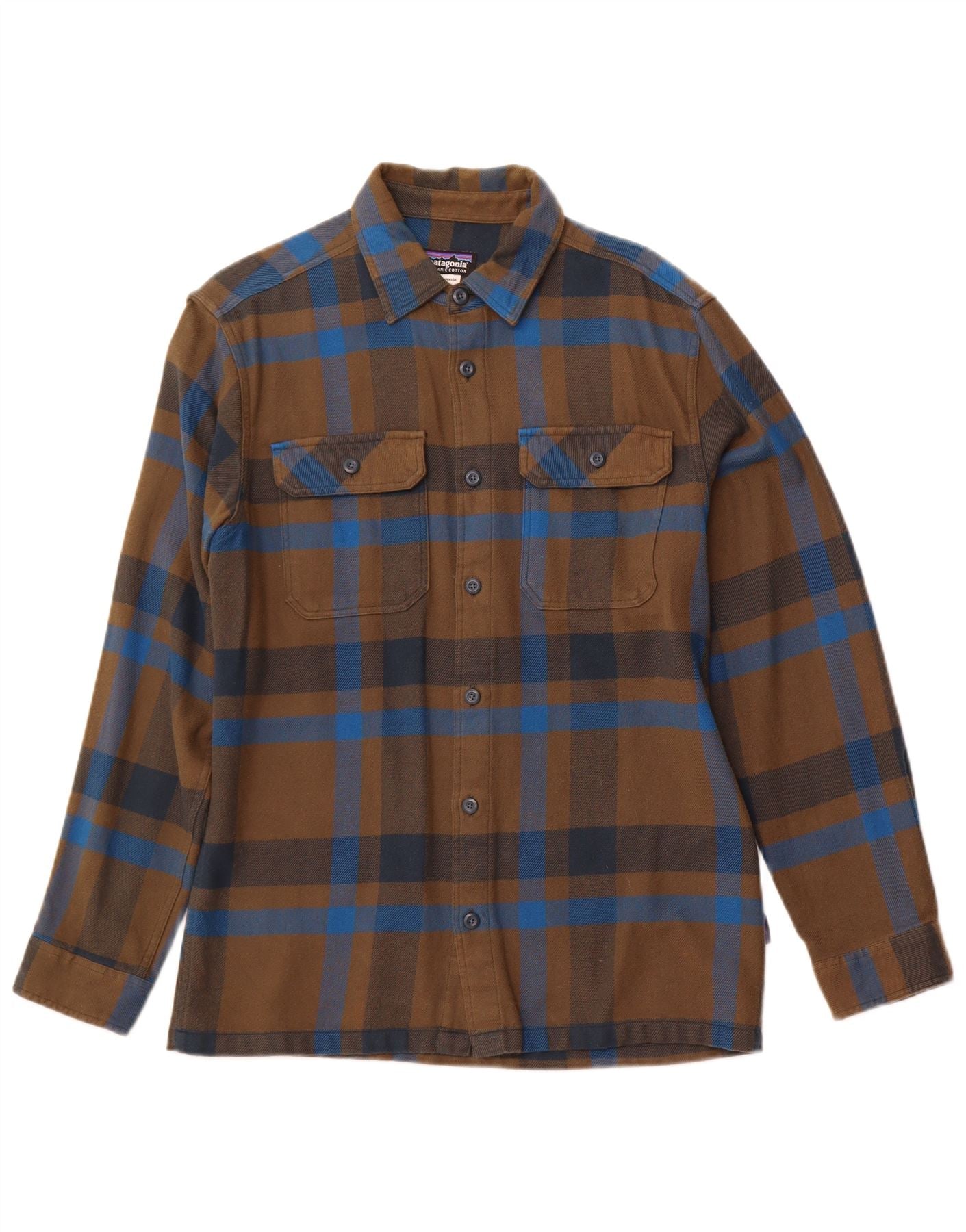 PATAGONIA Camicia da uomo in flanella di cotone scozzese piccolo marrone