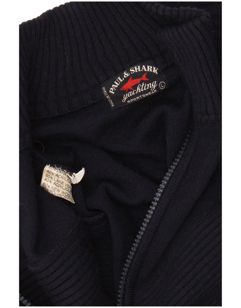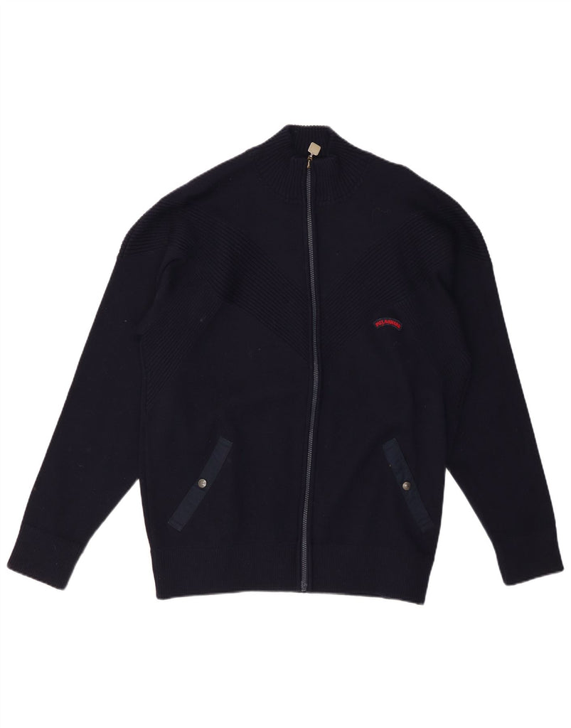PAUL & SHARK Maglione cardigan da uomo grande in lana blu navy