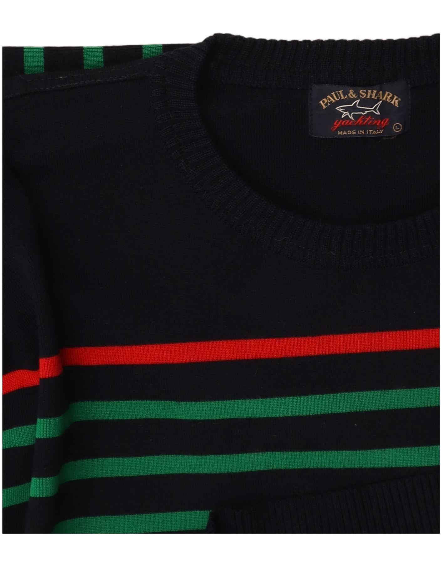 PAUL & SHARK Mens Crew Neck Jumper Sweater Large Navy Blue Striped