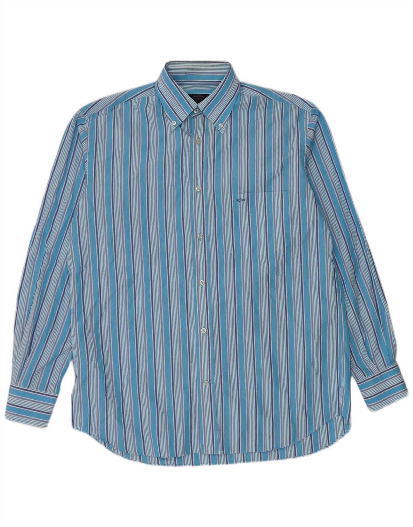 Camicia da uomo Paul & Shark taglia 40 cotone a righe blu medio