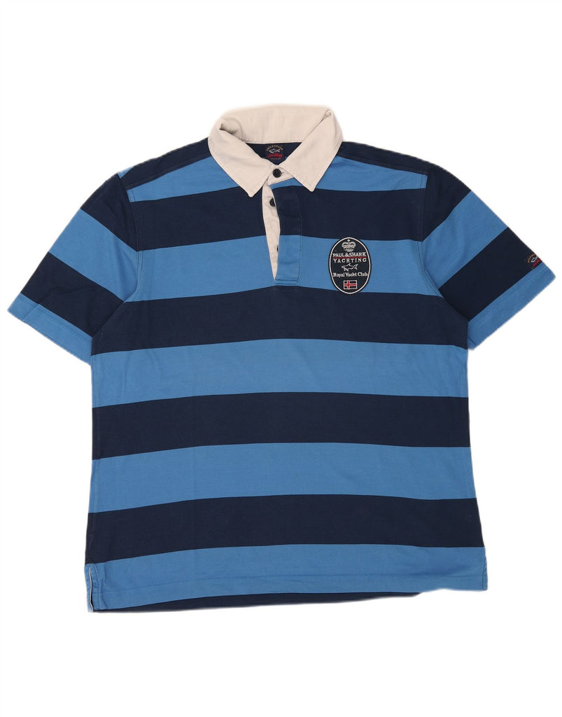 PAUL & SHARK Mens Yachting Graphic Rugby Polo Shirt Large Blue Striped