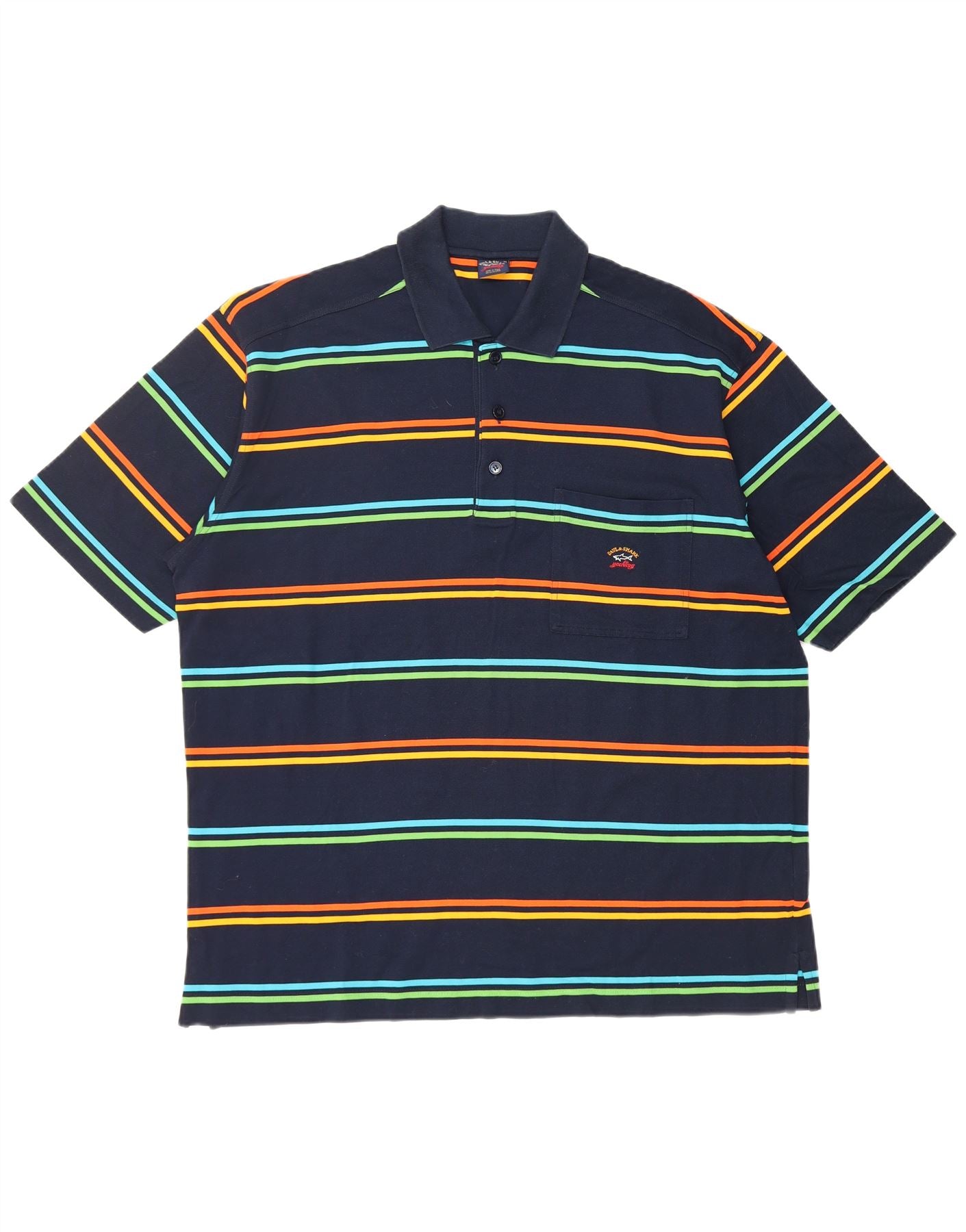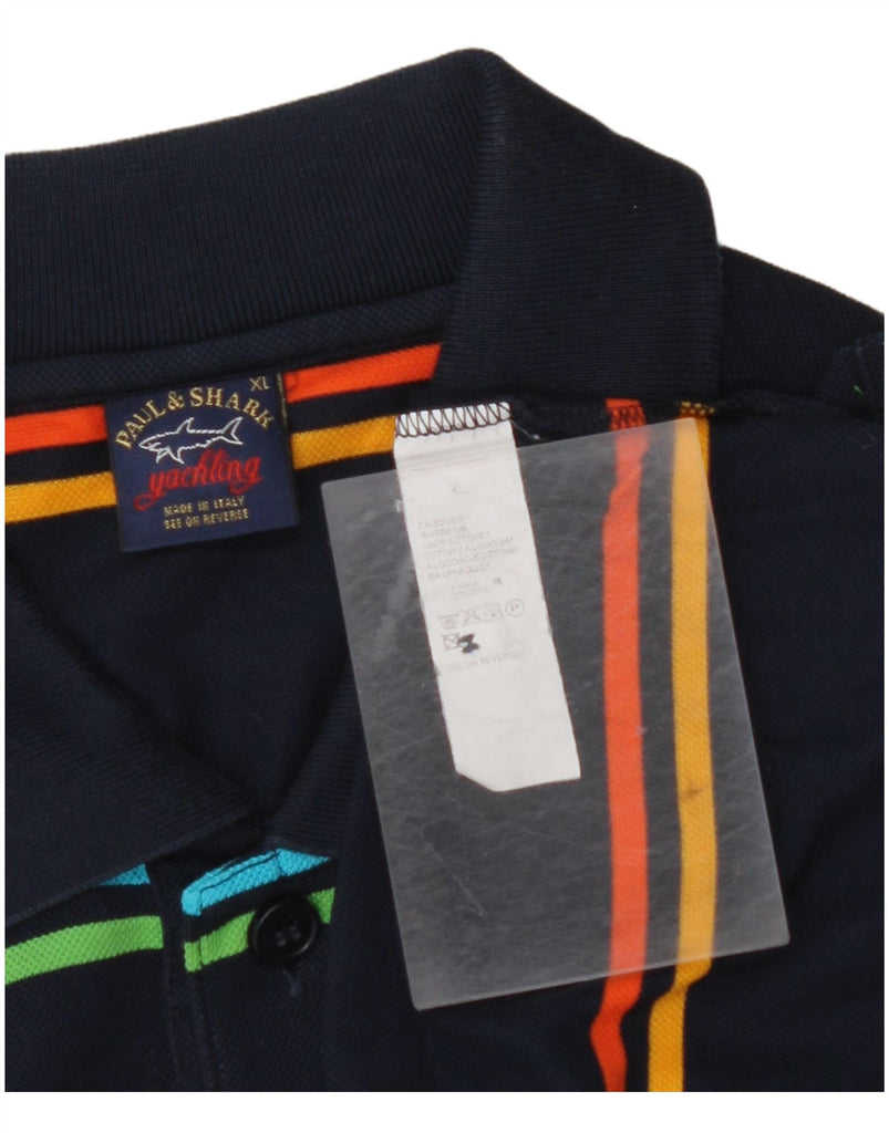 PAUL & SHARK Mens Yachting Polo Shirt XL Navy Blue Striped Cotton