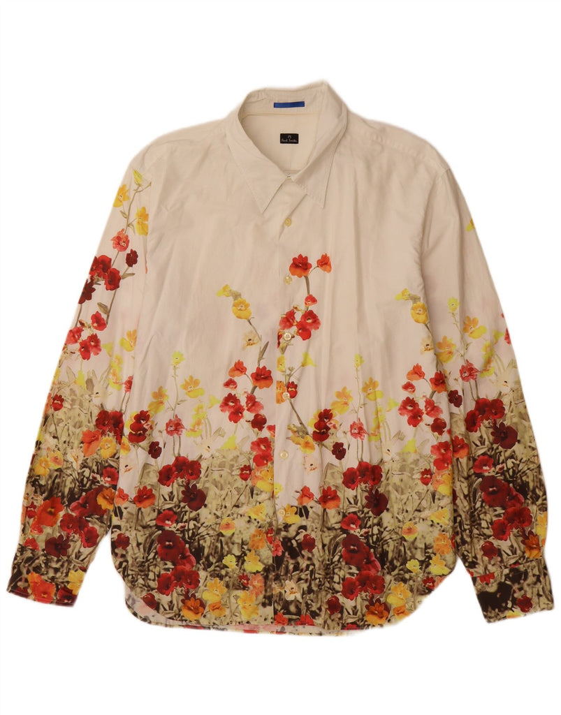 Camicia da uomo PAUL SMITH XL in cotone floreale bianco