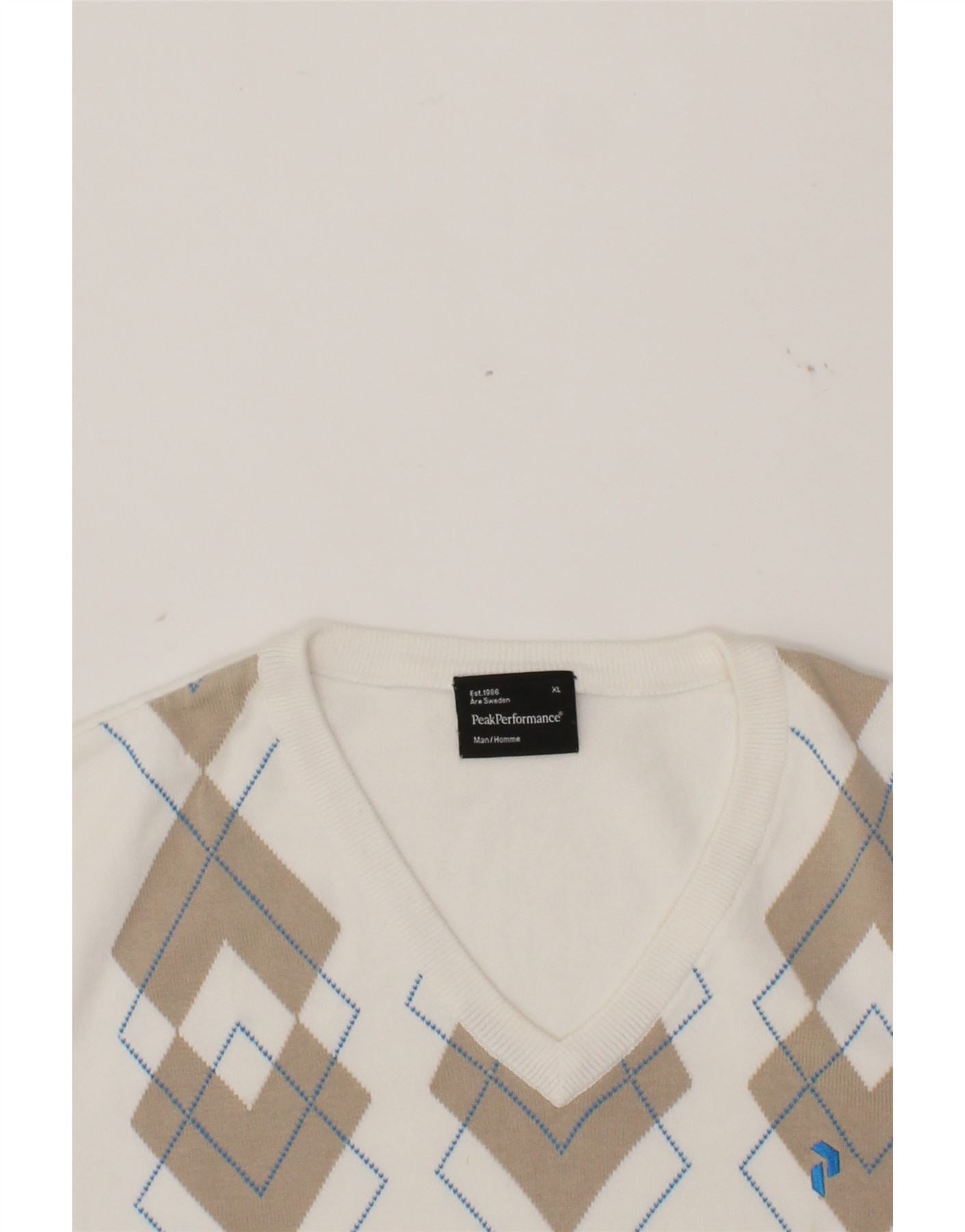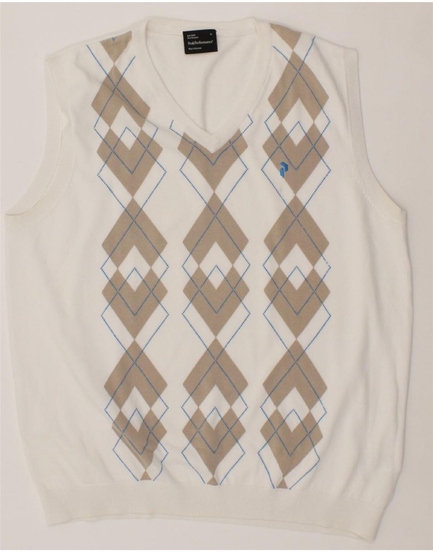 PEAK PERFORMANCE Mens Vest Tank Top XL White Argyle/Diamond Cotton