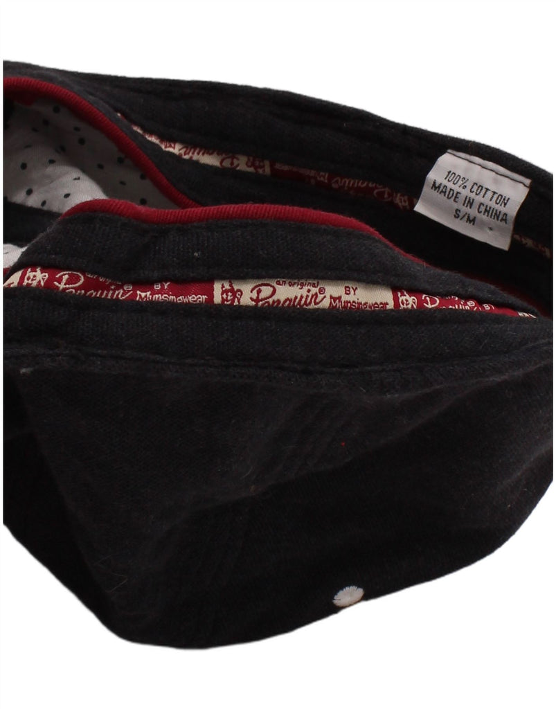 PENGUIN Mens Graphic Flat Cap Small/Medium Navy Blue Cotton Classic