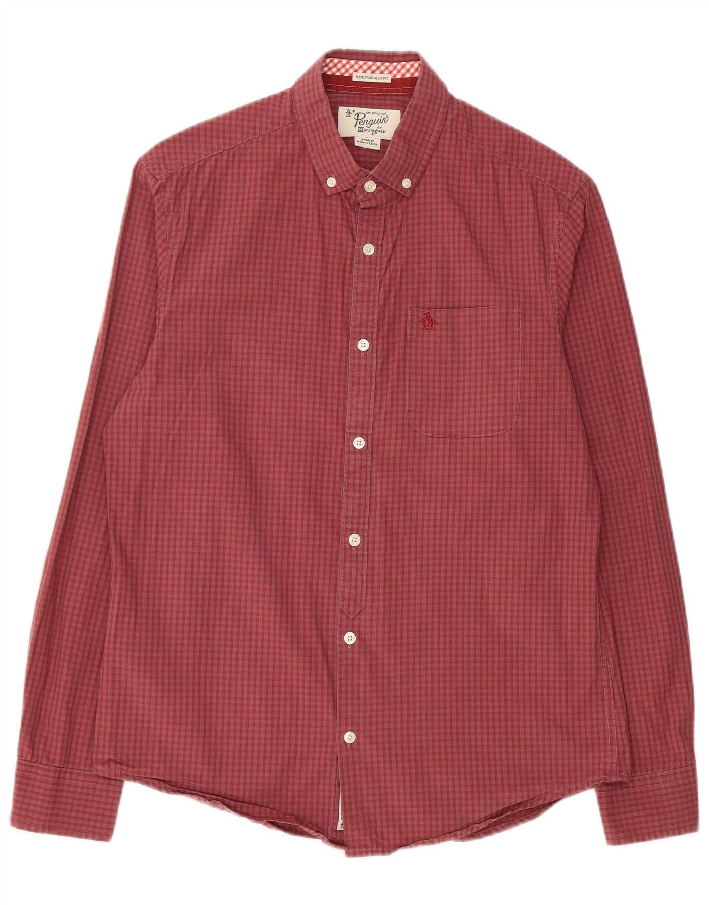 PENGUIN Camicia slim fit Heritage da uomo in cotone a quadretti rosso medio