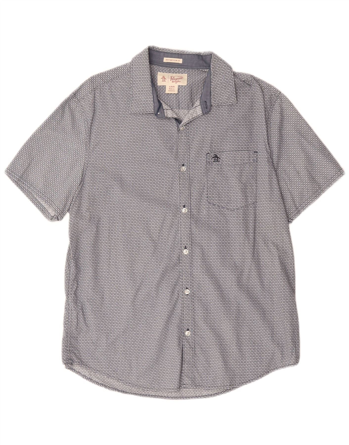 PENGUIN Camicia a maniche corte slim fit Heritage da uomo grande blu geometrico