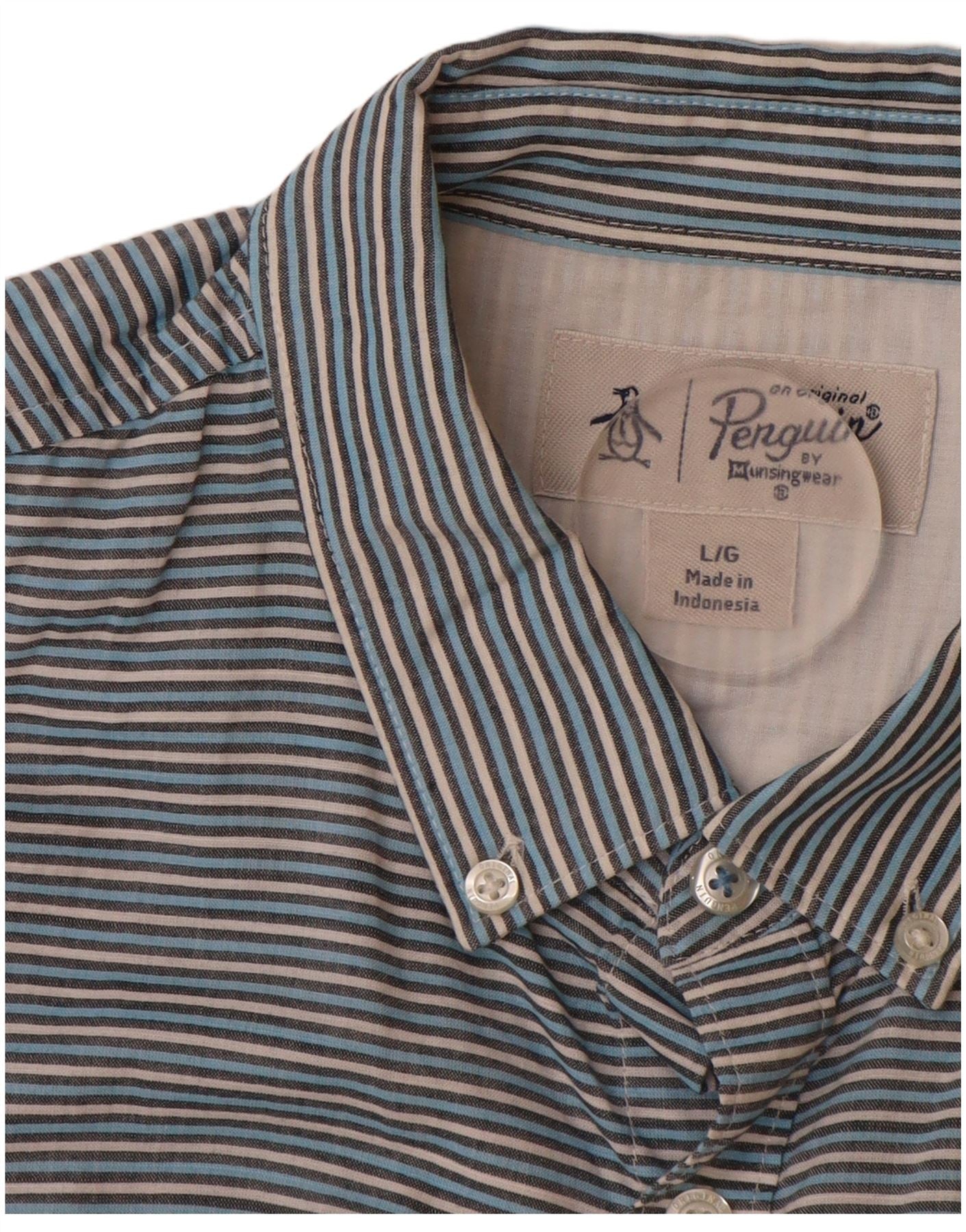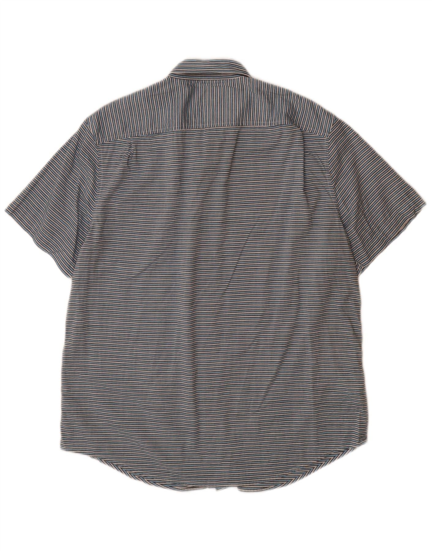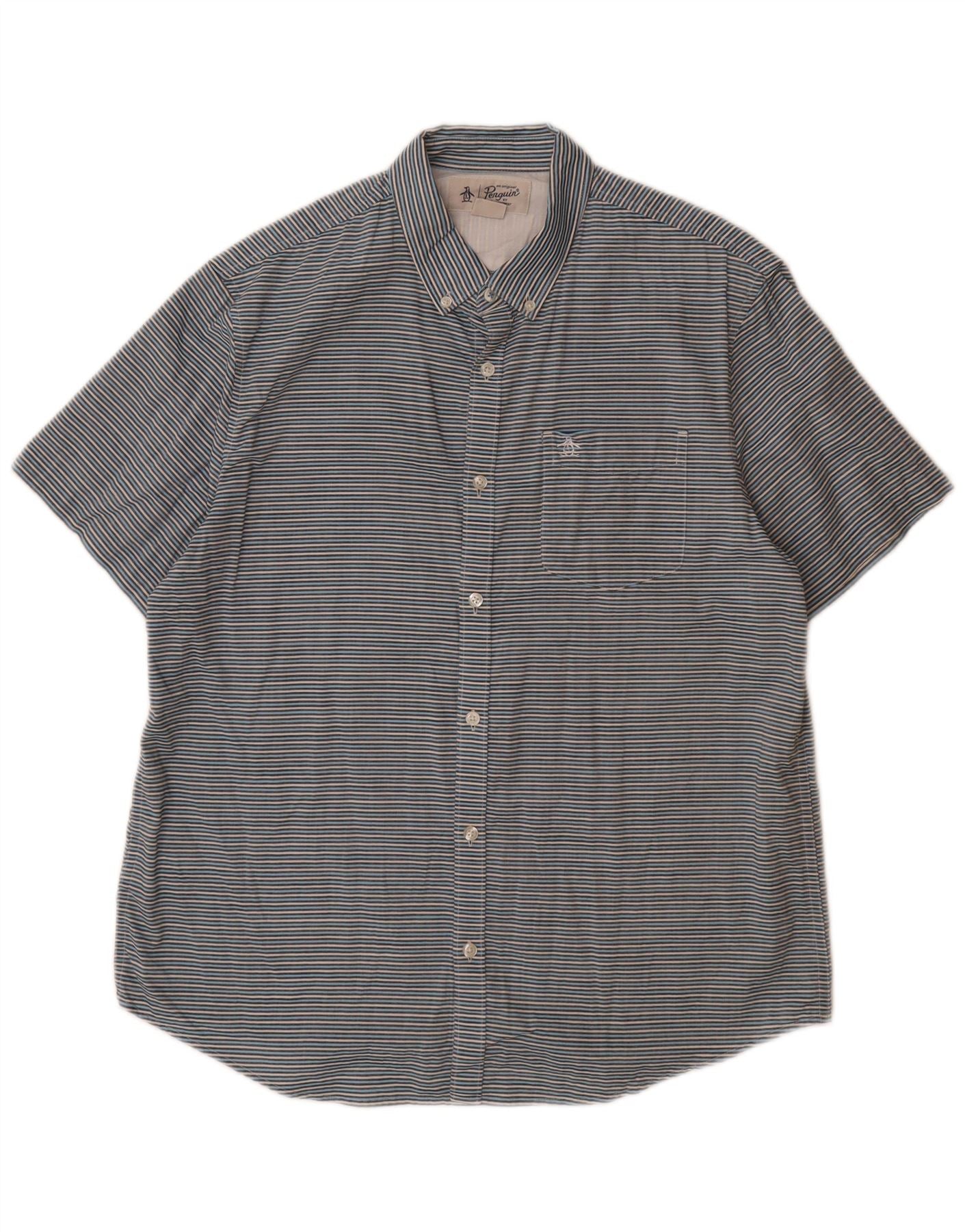 PINGUIN Camicia a maniche corte da uomo grande in cotone gessato blu