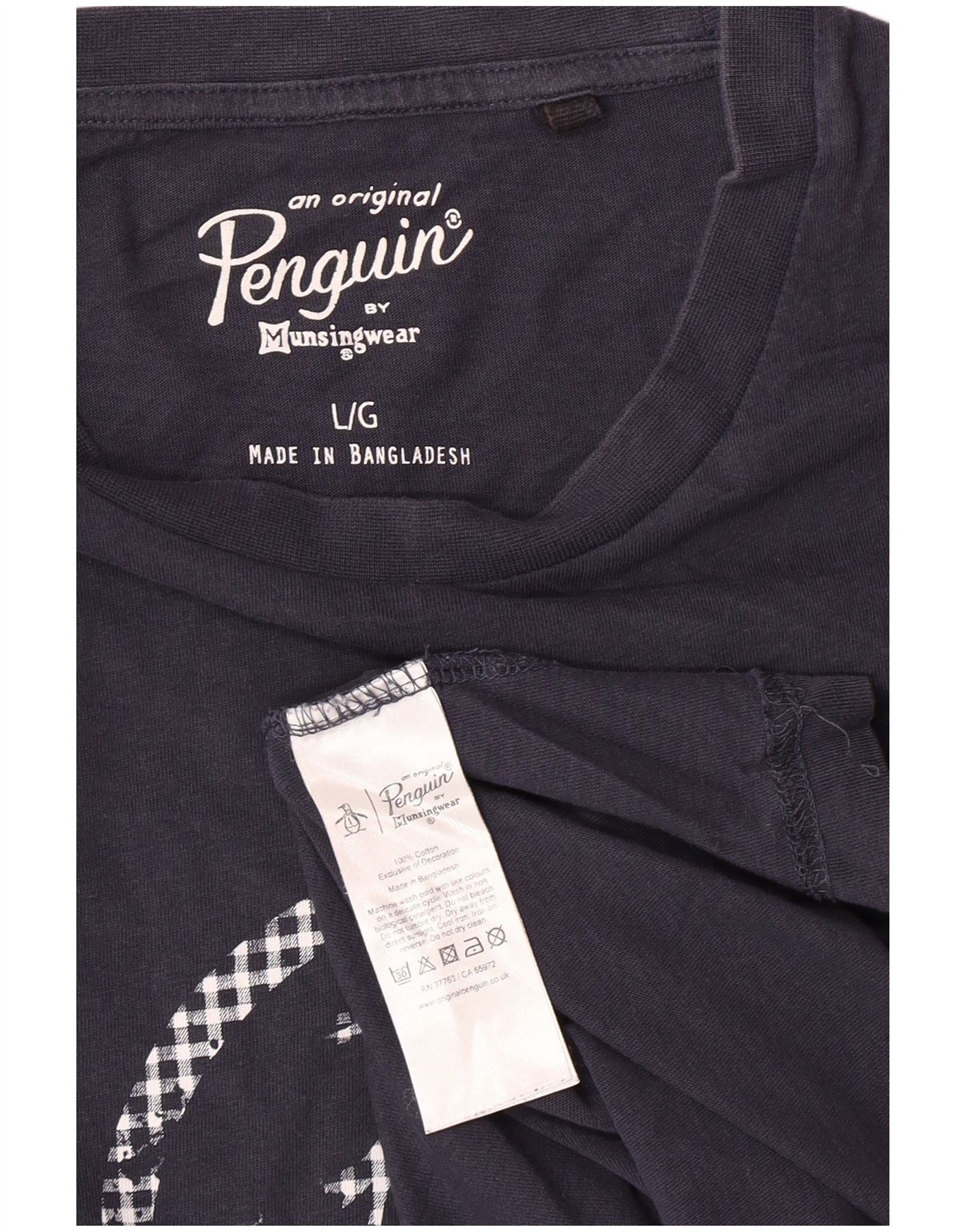 PENGUIN T-shirt grafica da donna Top UK 16 Large Blu Navy Cotone